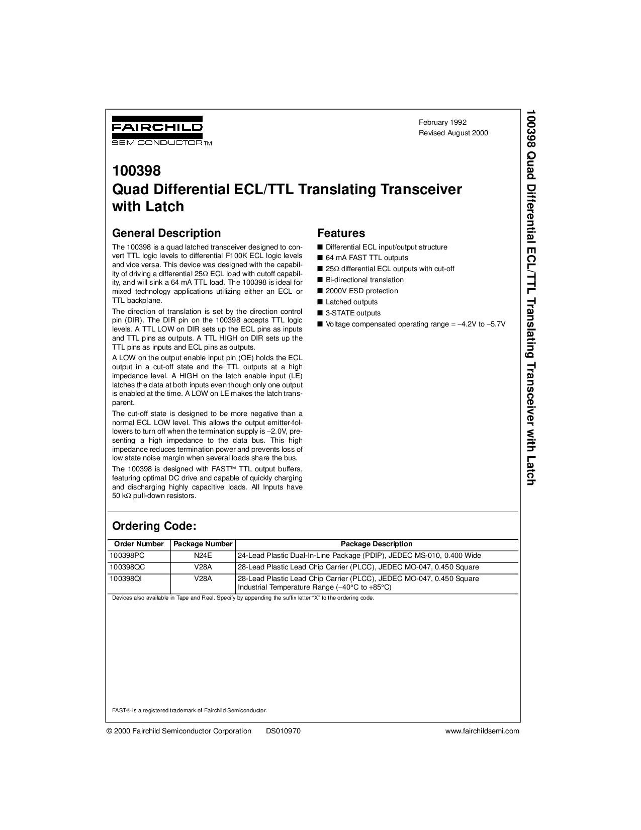 100398 四边形 差速器 ecl/ttl 翻译 收发器 与 门闩
