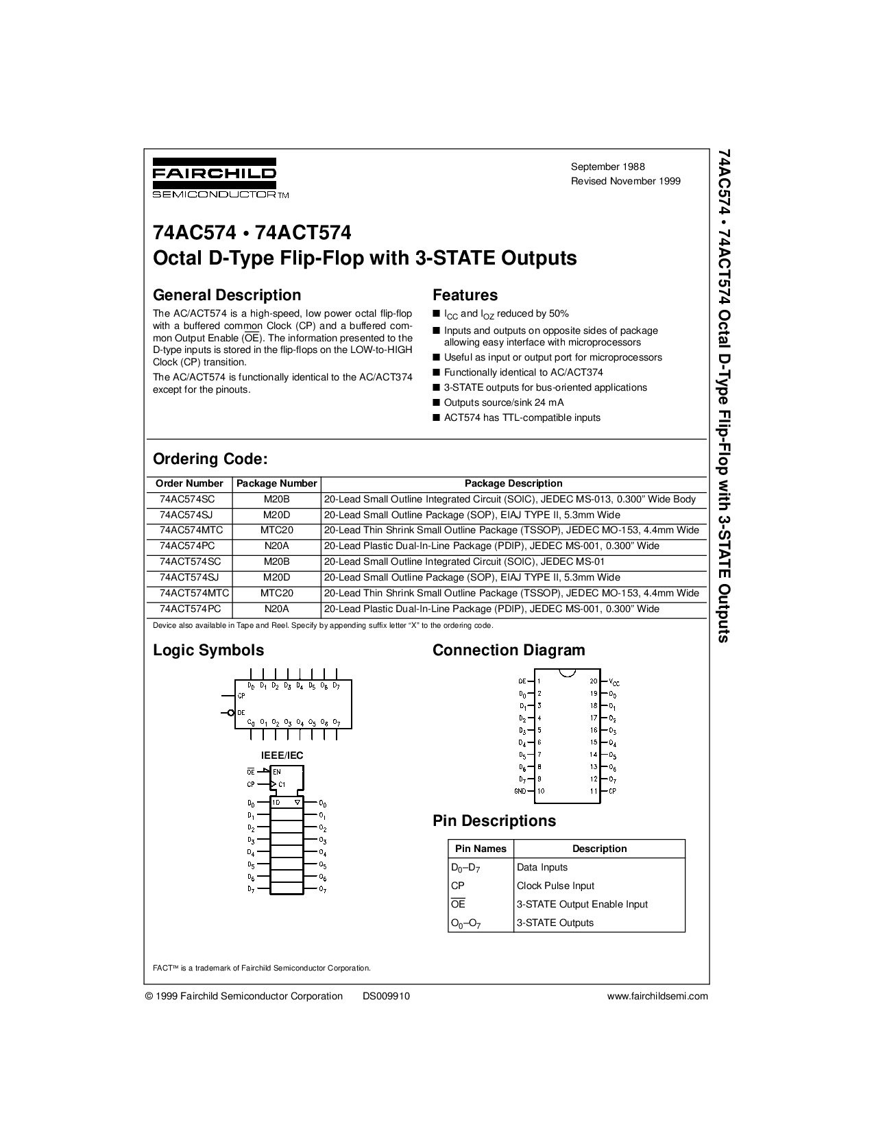 74ACT574SC M20B 20-铅 小 大纲 综合 电路 (soic), 电子元件工业联合会 ms-01