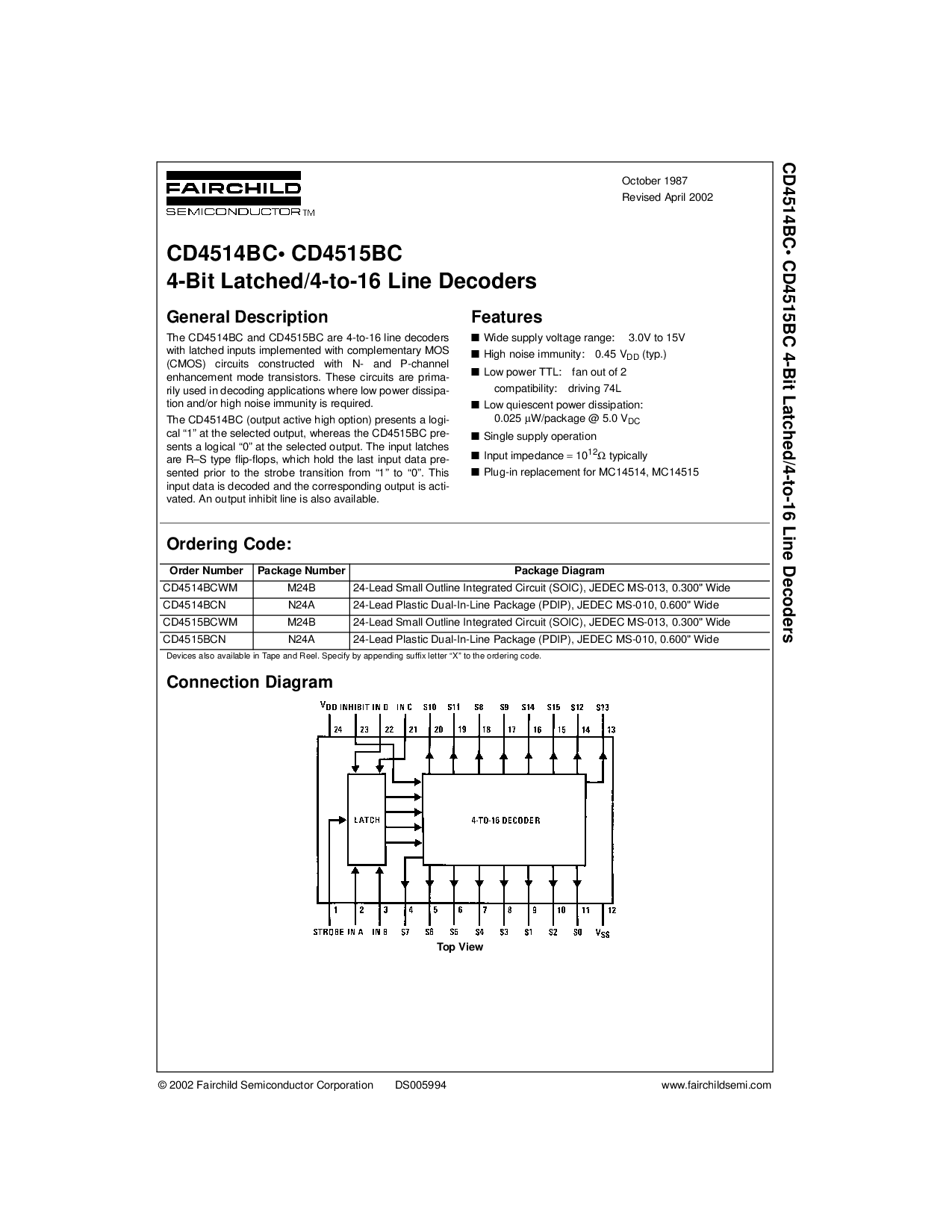 cd4514bc• cd4515bc 4-有点 锁定/4-至-16 线 解码器