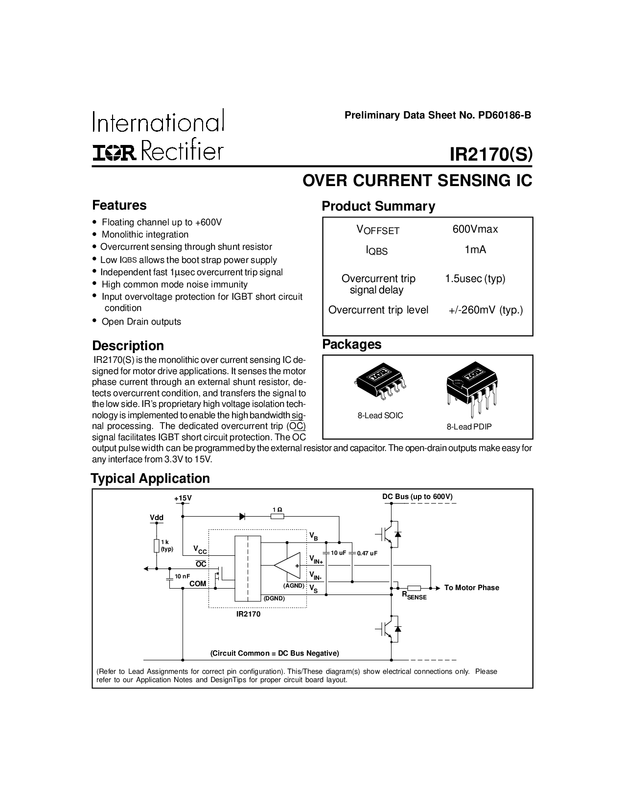 ir2170(s) 是 这 单片 结束 电流 感应 集成电路 de-