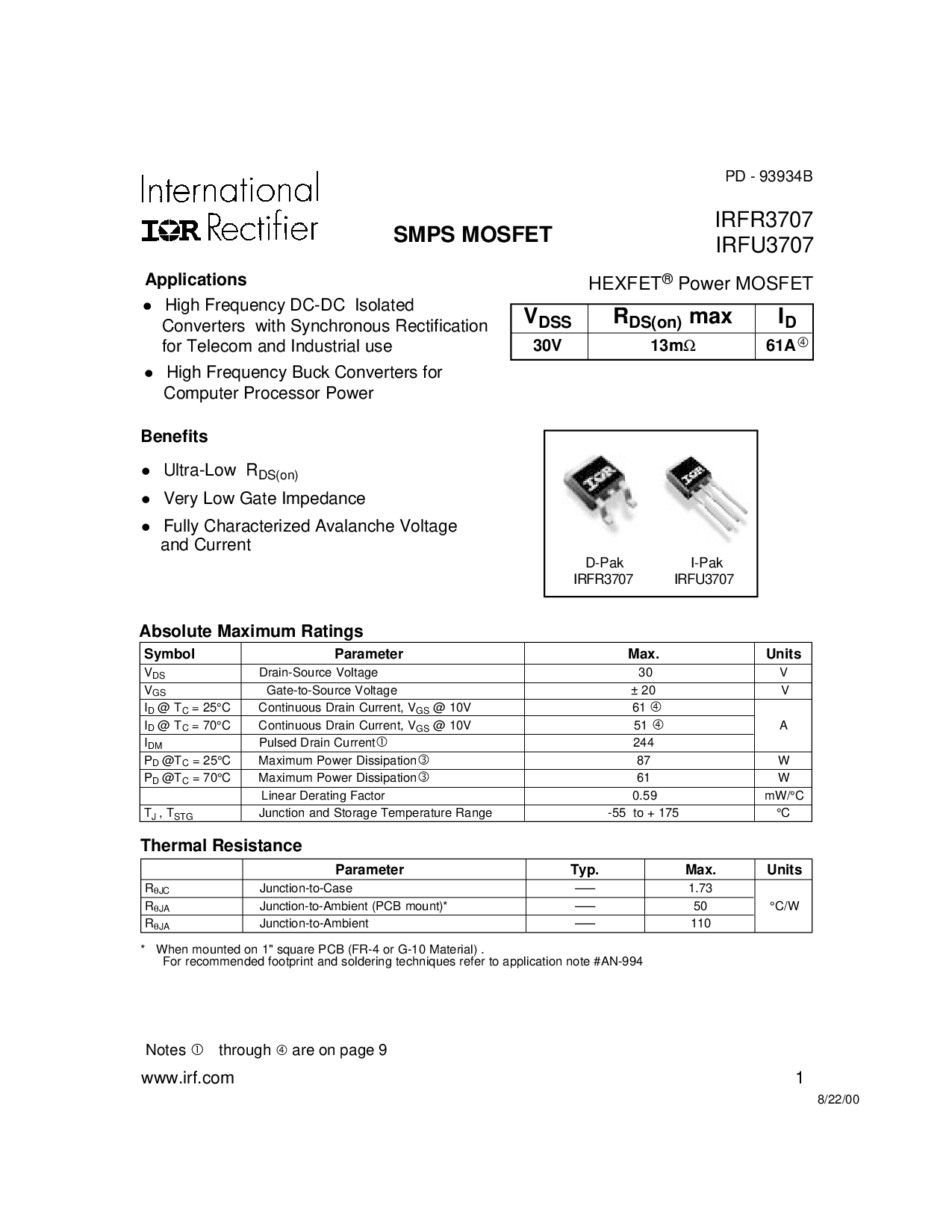 irfr3707 irfu3707