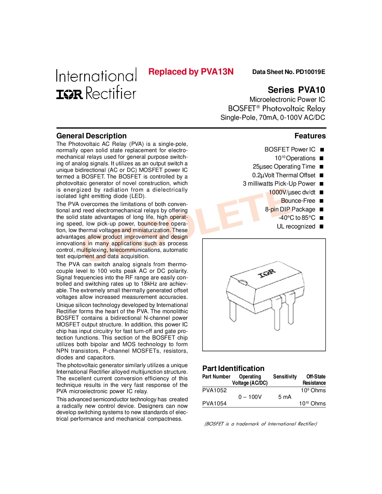 这 photovoltaic 交流电 继电器 (pva) 是 一个 单独-杆,