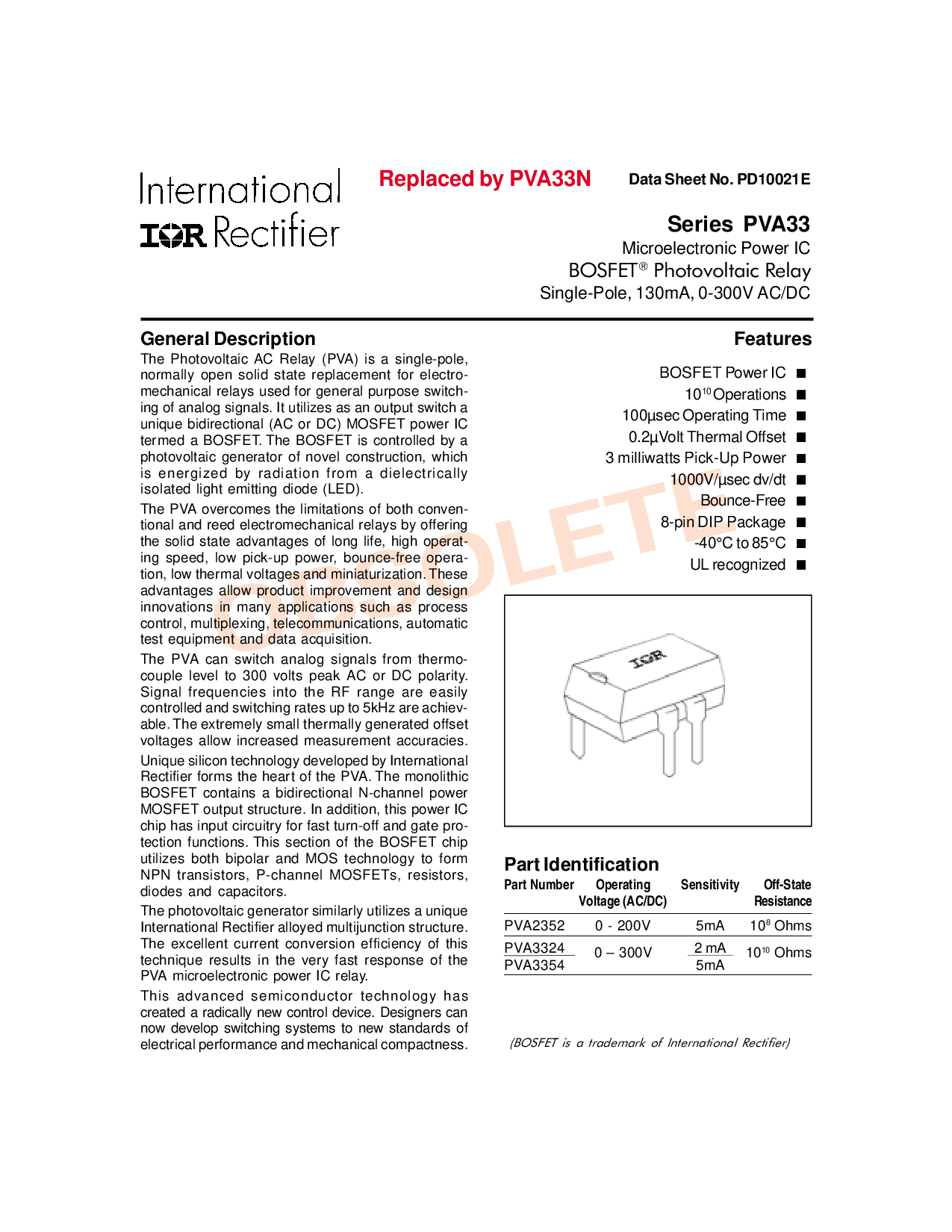 这 photovoltaic 交流电 继电器 (pva) 是 一个 单独-杆,