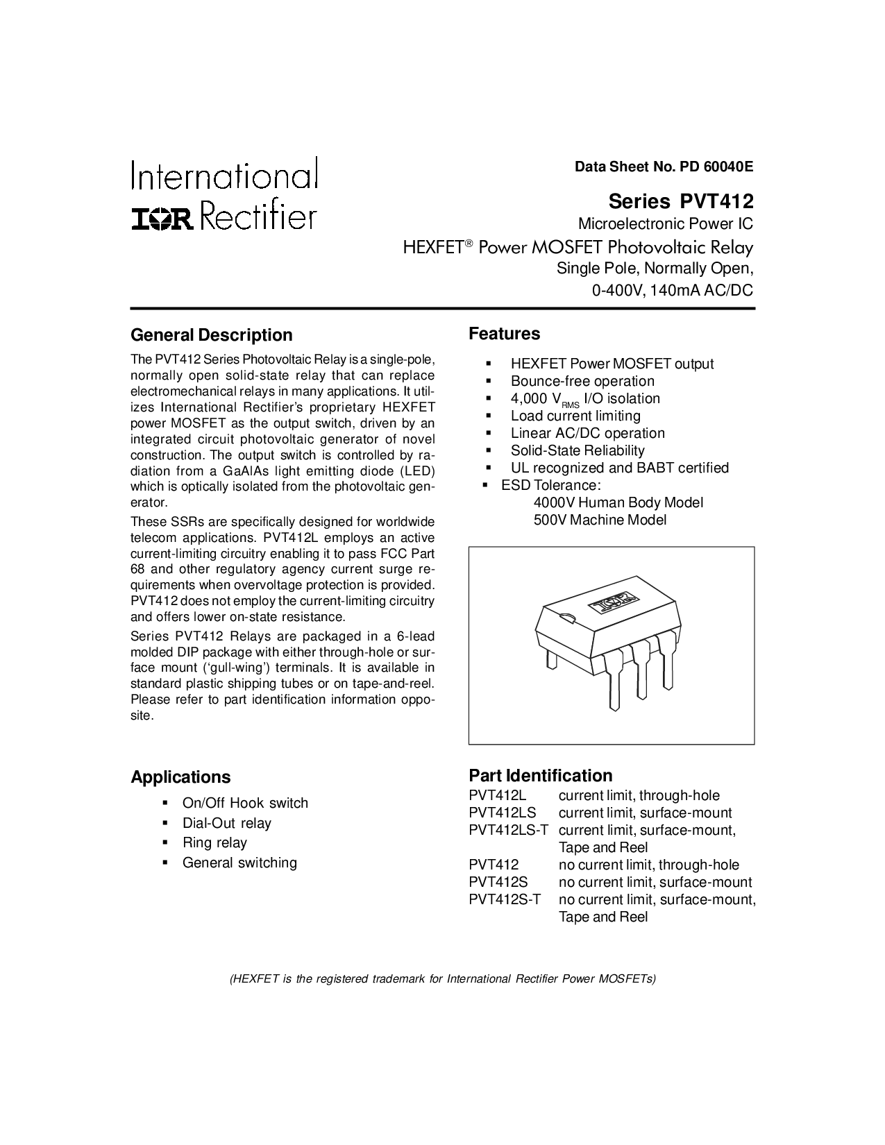 系列 pvt412 继电器 是 已打包 入点 一个 6-铅