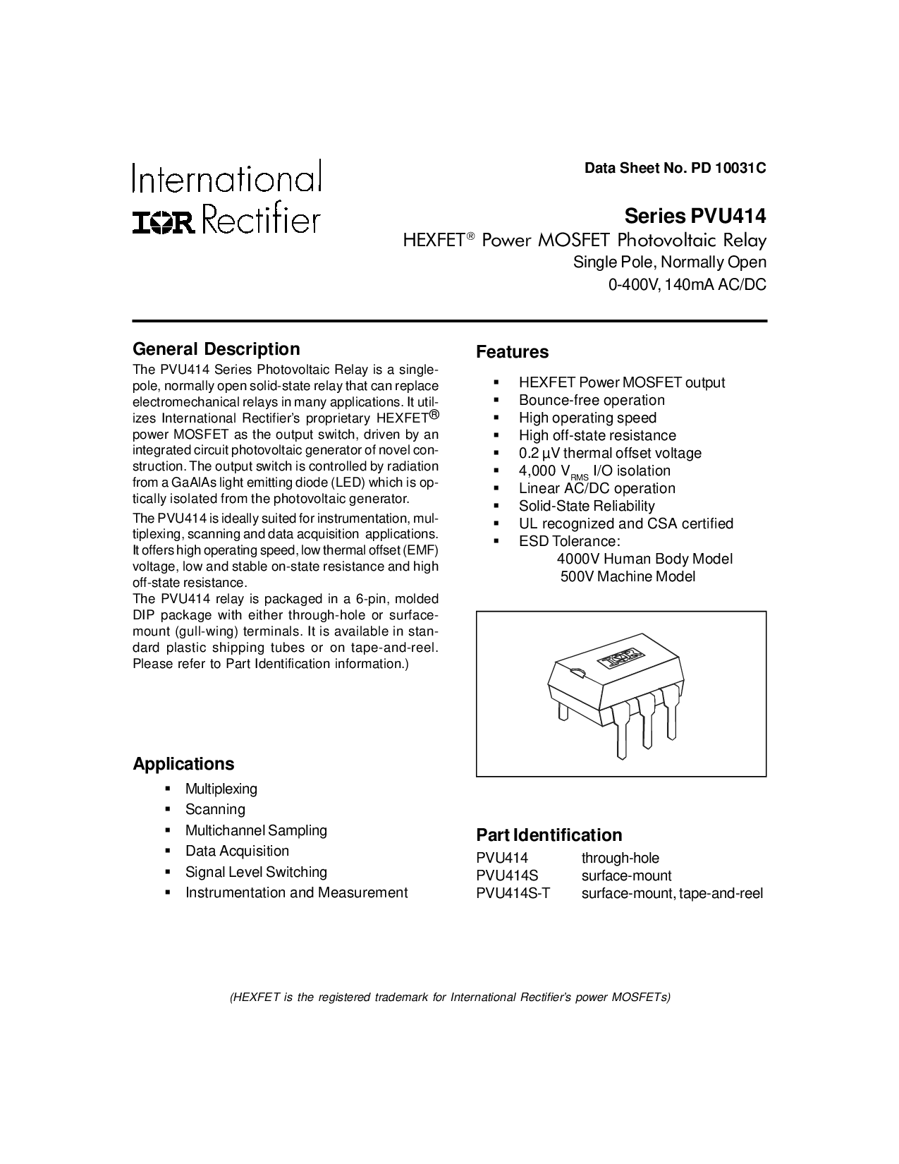 这 pvu414 系列 photovoltaic 继电器 是 一个 单独-