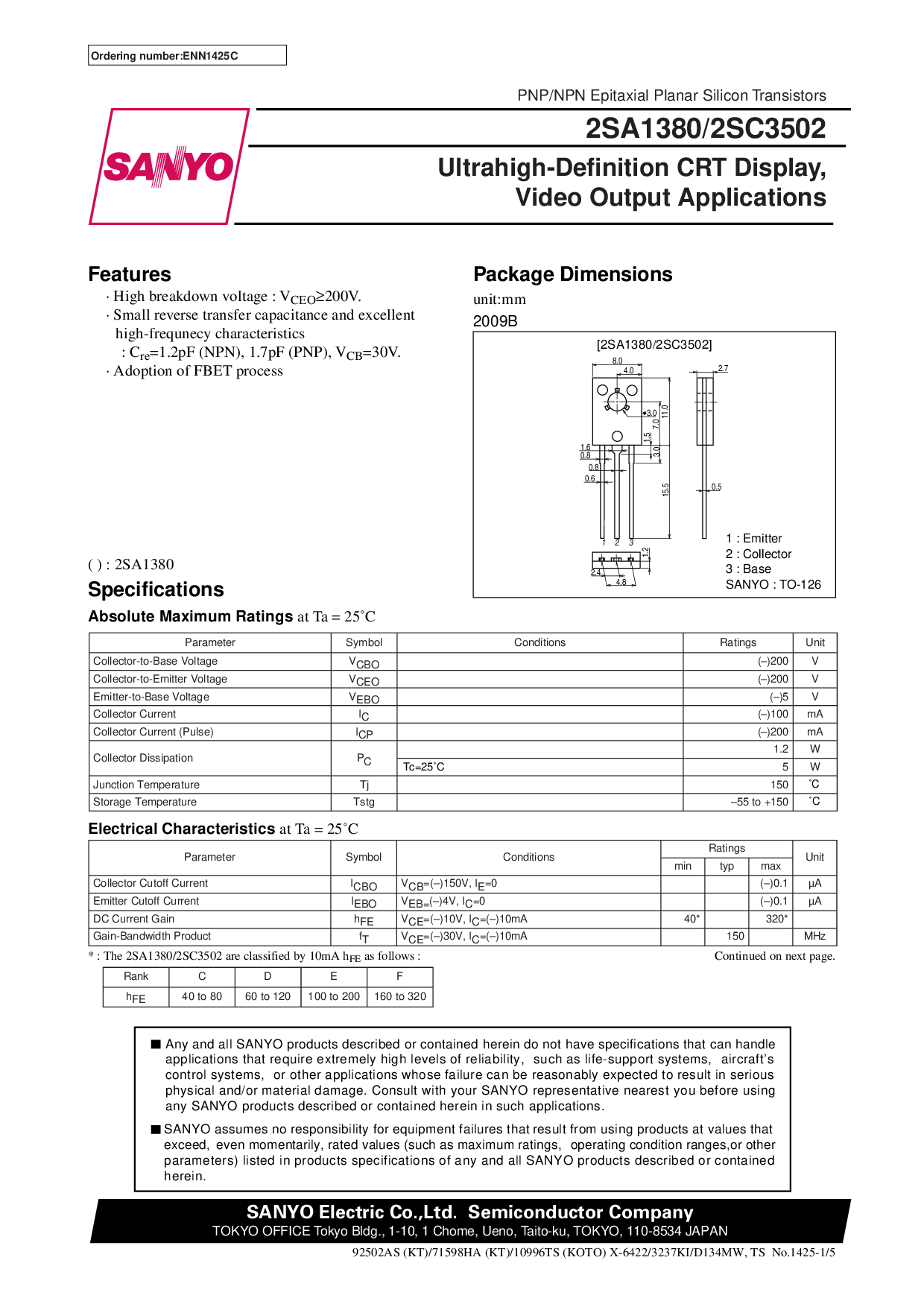 * : 这 2sa1380/2sc3502 是 已分类 由 10ma h