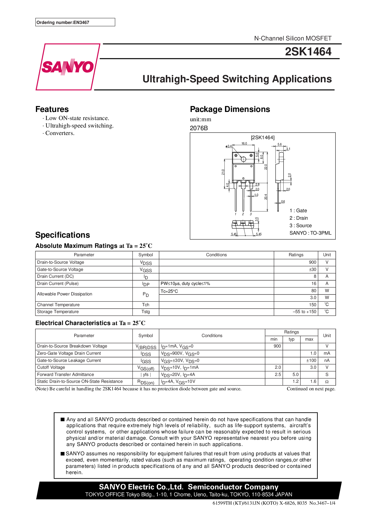 (备注) 是 小心点 入点 搬运 这 2sk1464 因为 它 有 否 保护 二极管 之间 闸门 和 来源. 续 开启 下一个 第页.