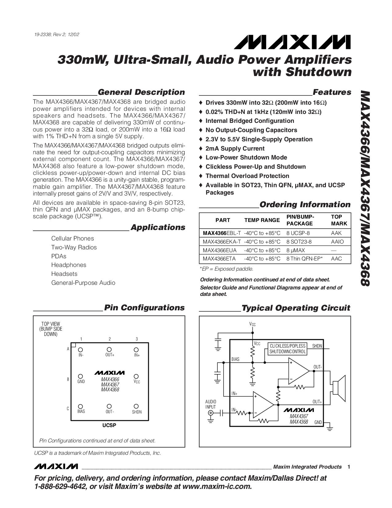 max4368 是 有能力 的 交付 330mw 的 连续-