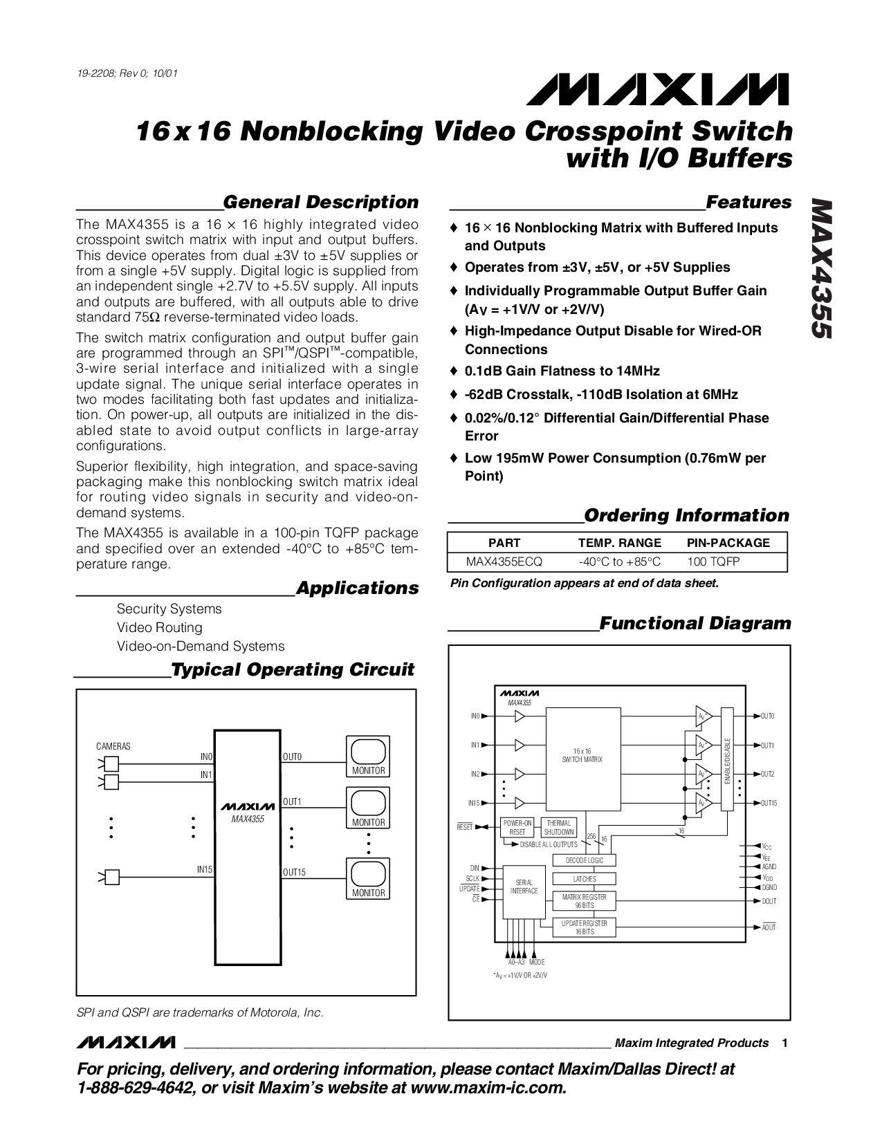 这 max4355 是 可用 入点 一个 100-管脚 tqfp 包装