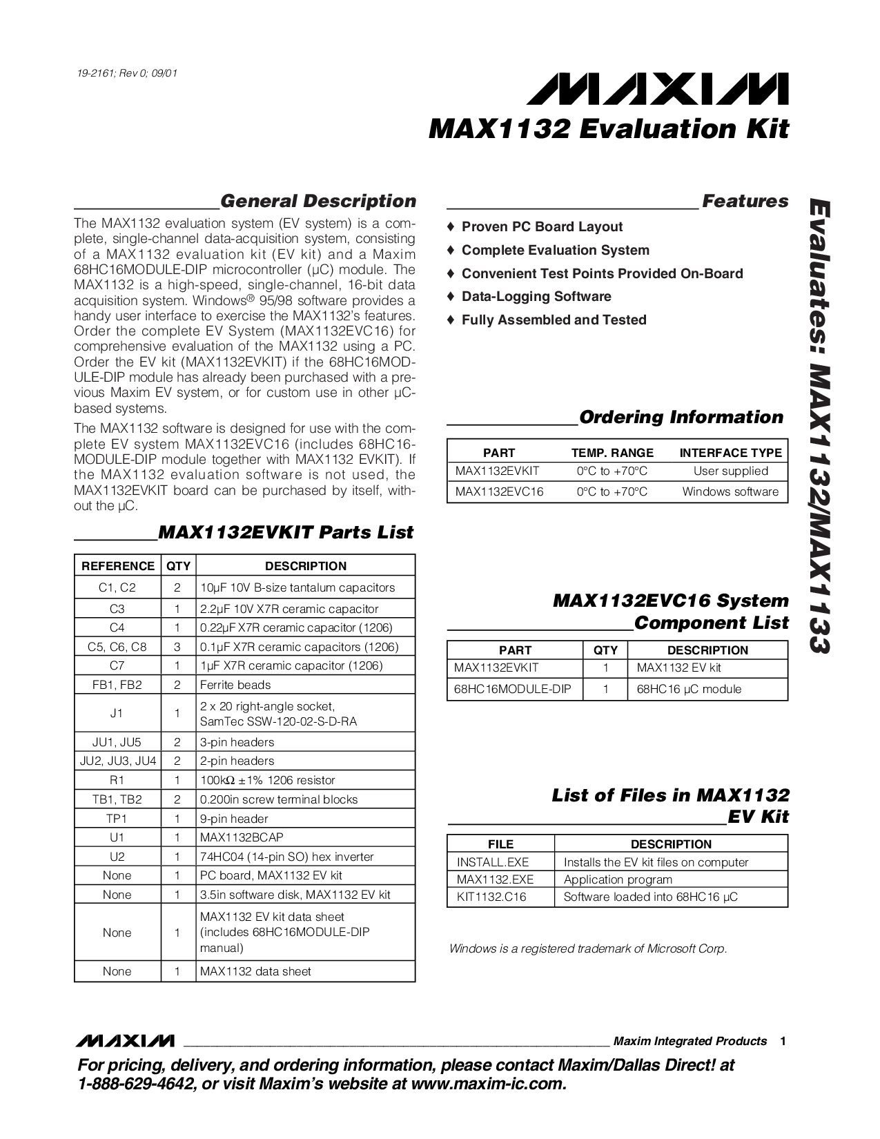 MAX1132EVKIT 1 max1132 电动汽车 工具包
