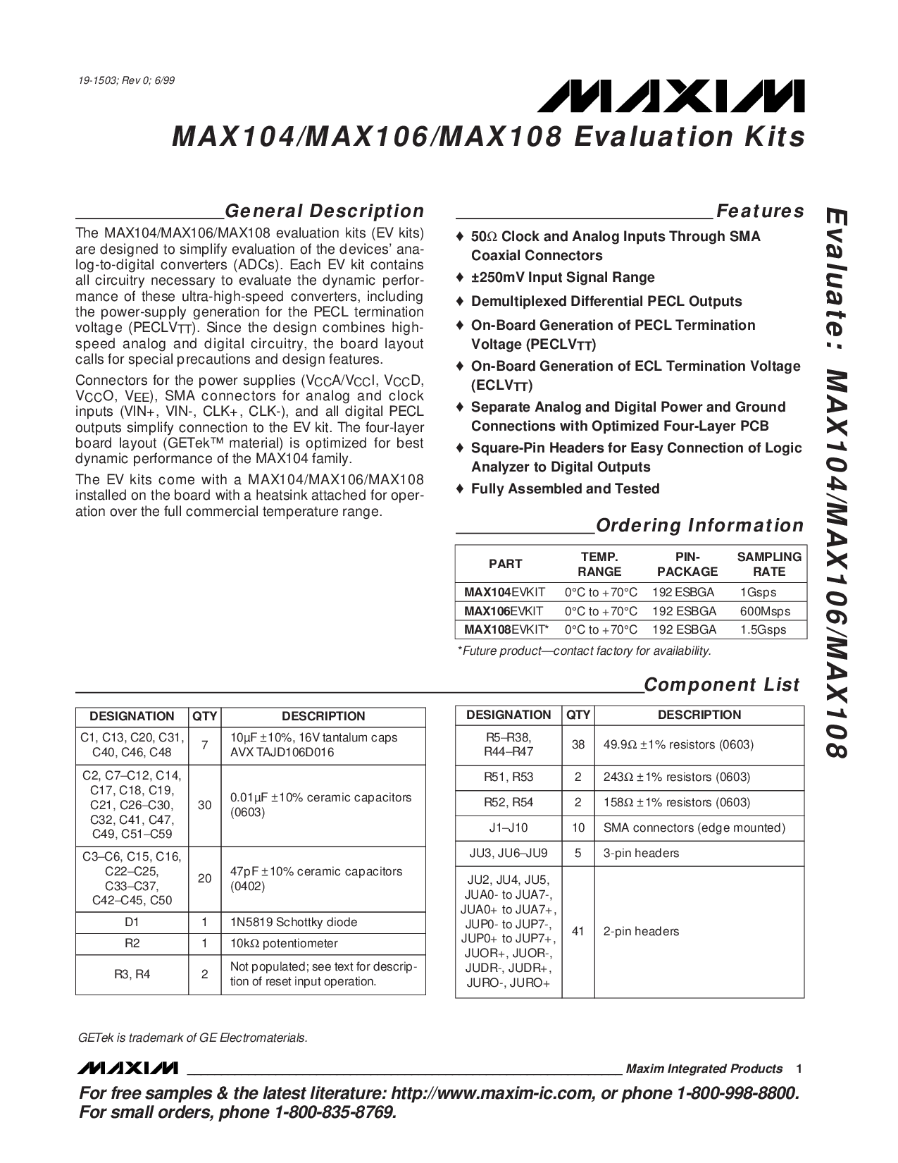 用于 免费 样品 &放大器; 这 最新 文学: http://www.马克西姆-集成电路.com, 或 电话 1-800-998-8800.