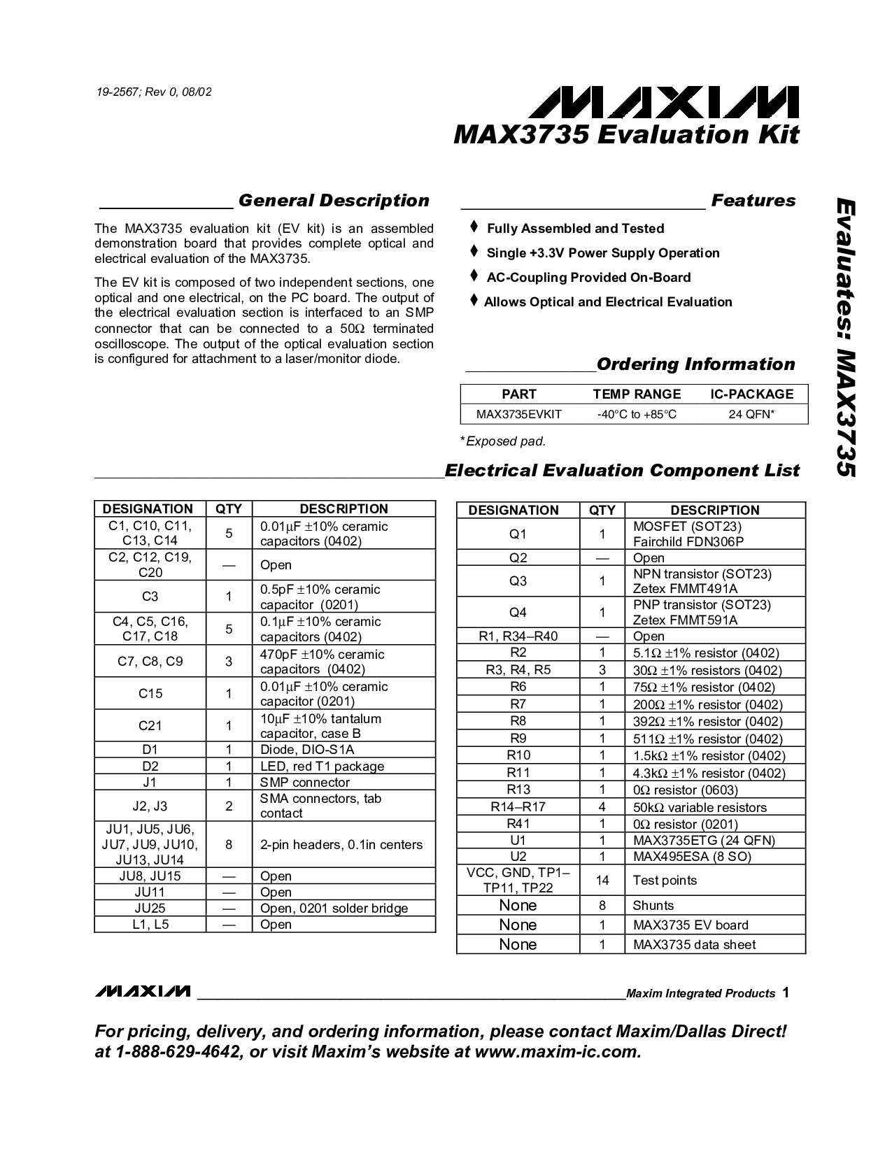 MAX3735EVKIT -40°c 至 +85°c 24 qfn*