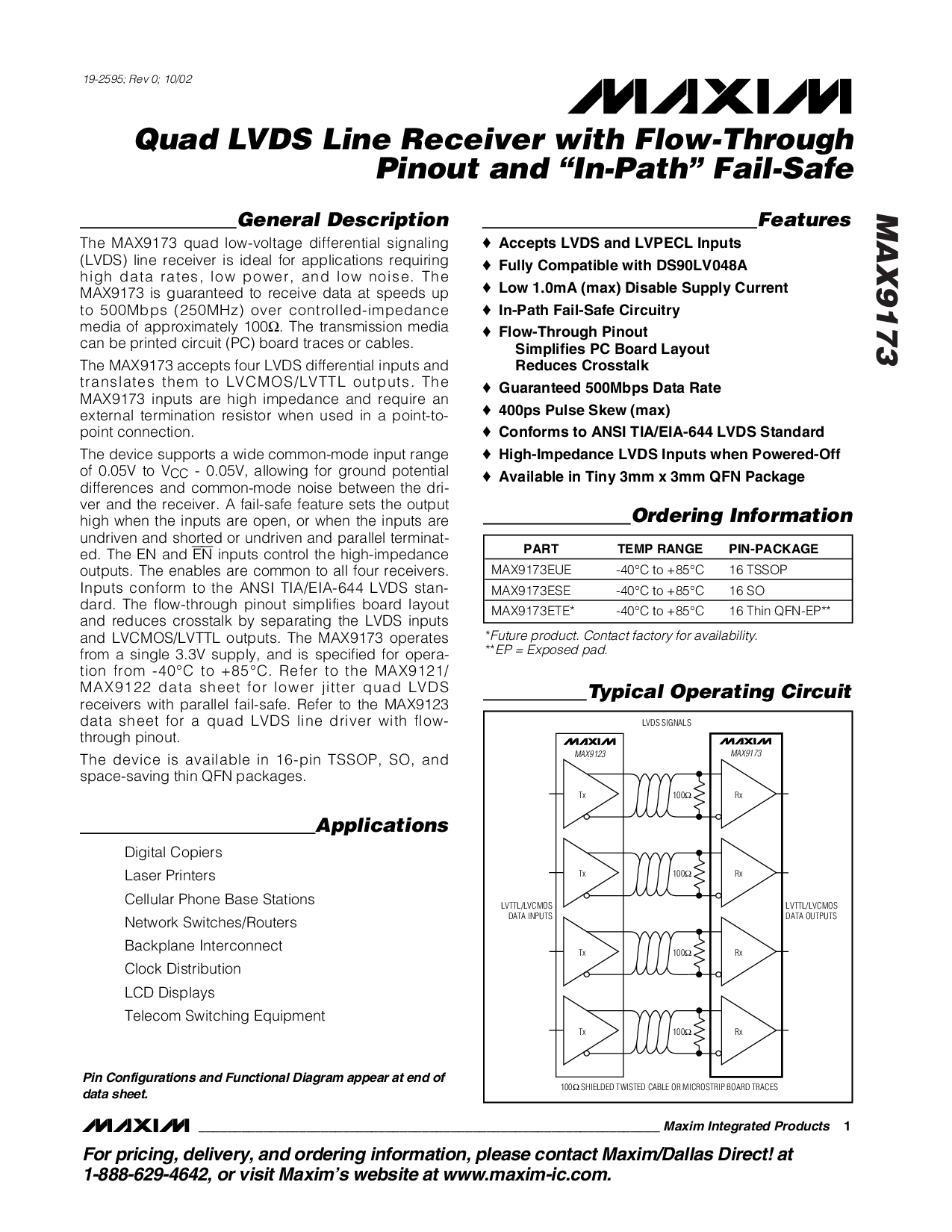 max9173 是 保证 至 接收 数据 在 速度 向上