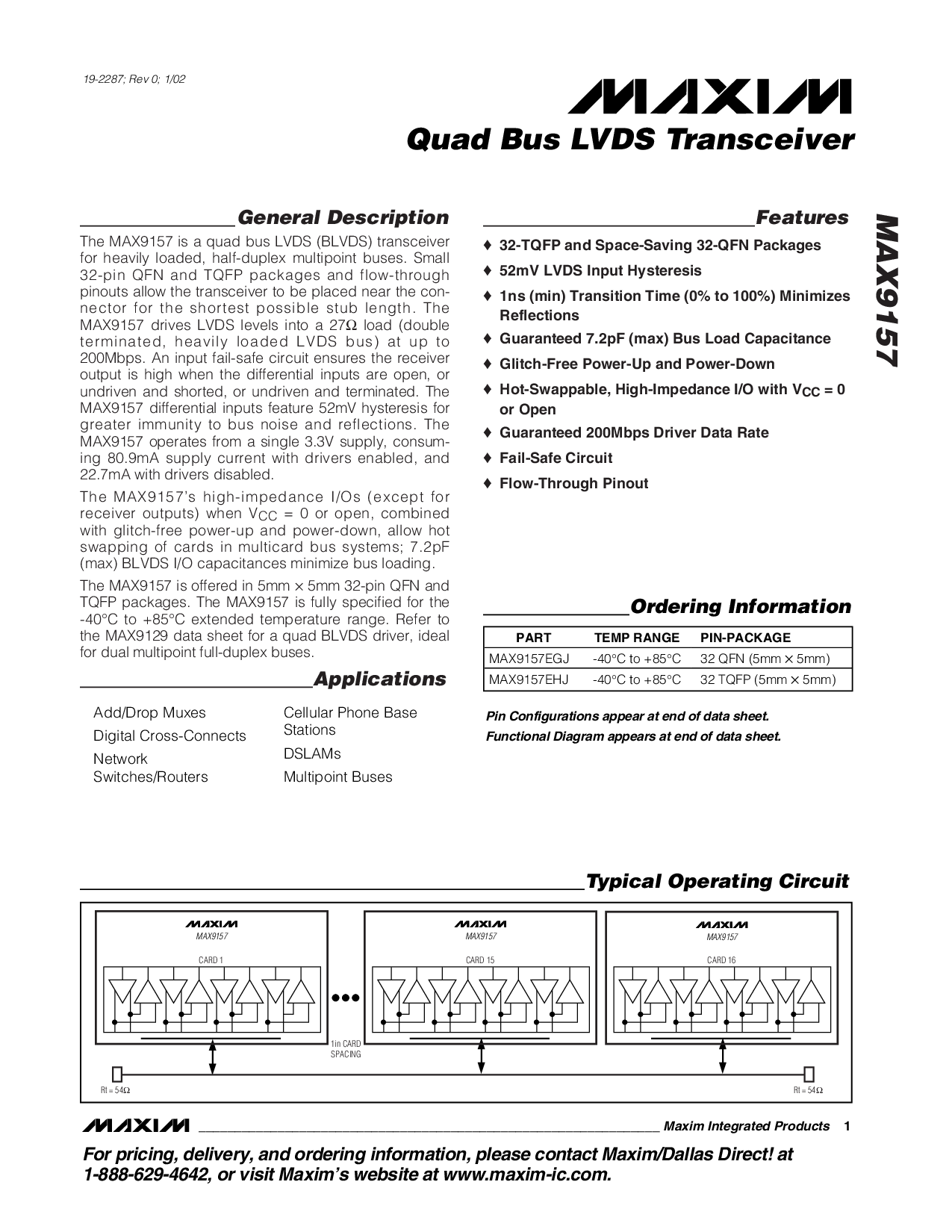 tqfp 软件包. 这 max9157 是 完全 指定 用于 这