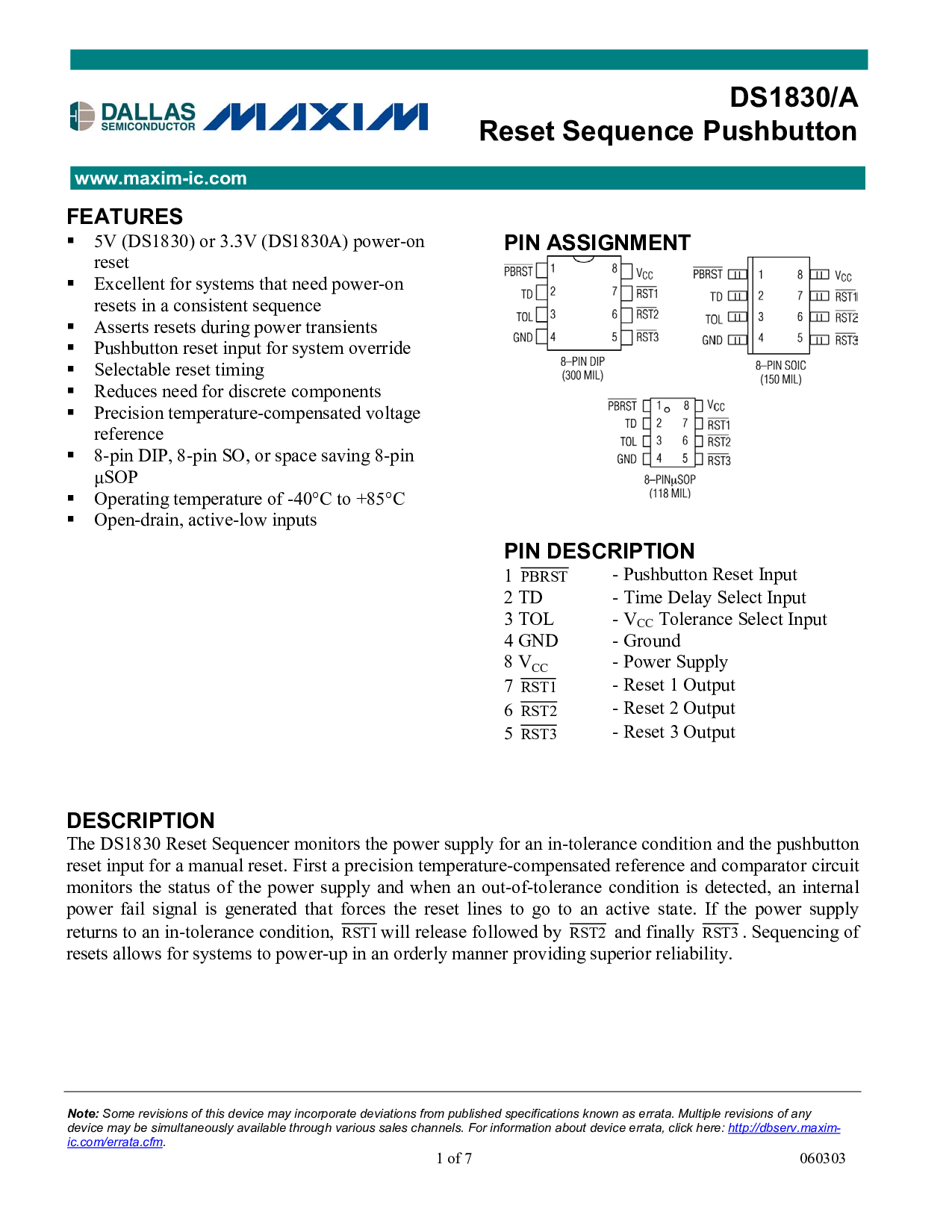 这 ds1830 重置 音序器 显示器 这 电源 补充y 用于 一个 入点-公差 条件 和 这 按钮