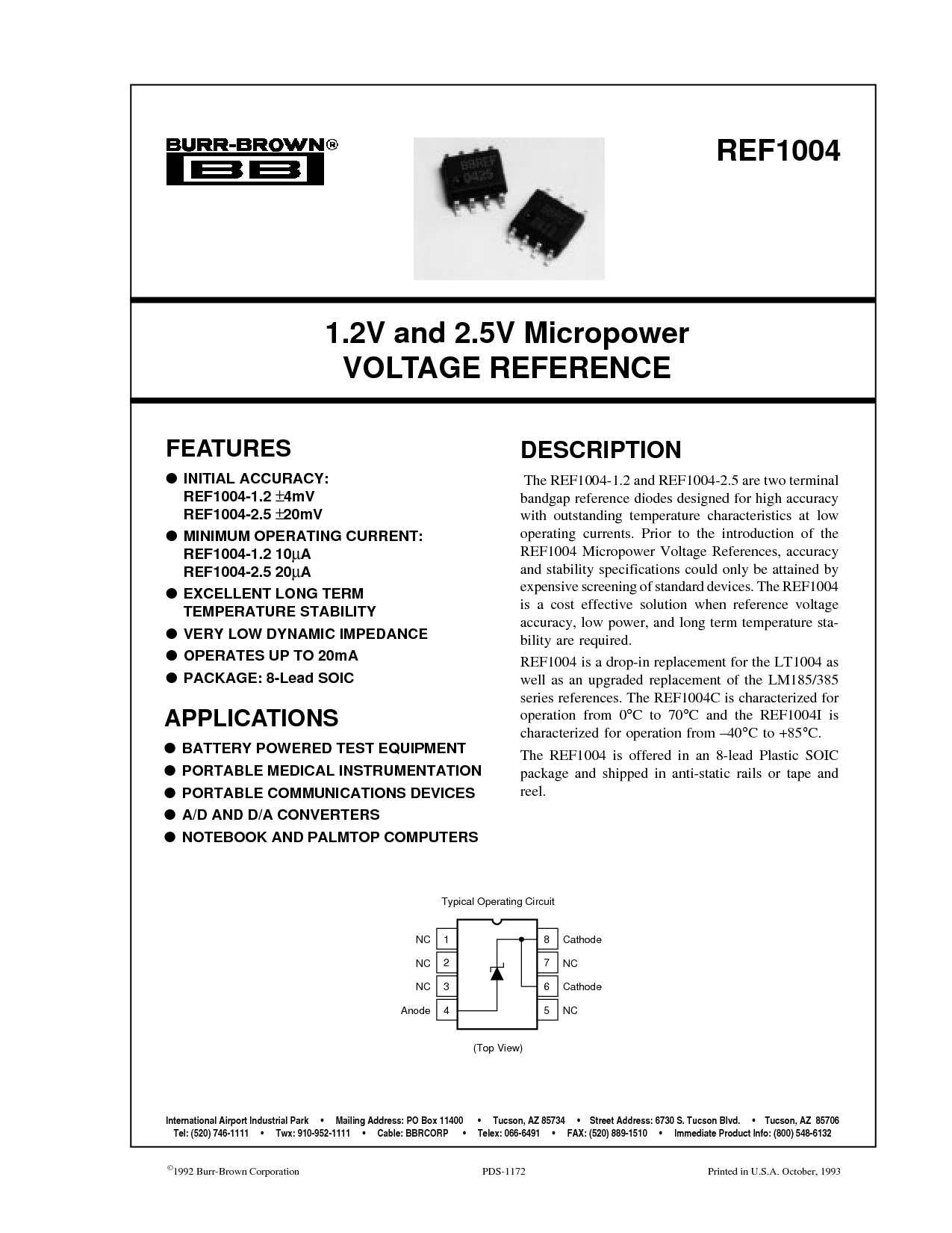 电话: (520) 746-1111 twx: 910-952-1111 电缆: bbrcorp • telex: 066-6491 传真: (520) 889-1510 立即 产品 信息: (800) 548-6132