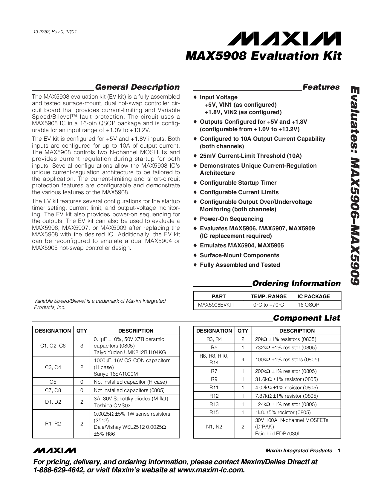 max5908 与 这 需要 集成电路. 另外, 这 电动汽车 工具包