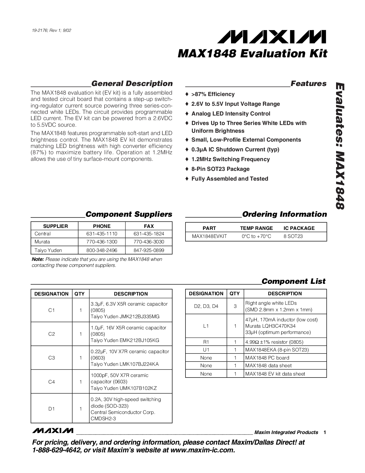 这 max1848 评价 工具包 (电动汽车 工具包) 是 一个 完全 已装配