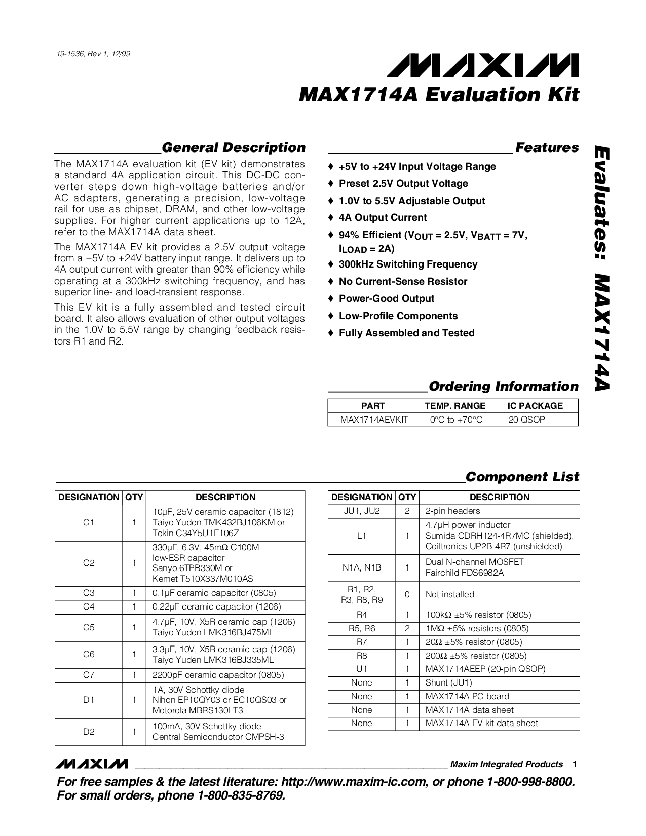 用于 免费 样品 &放大器; 这 最新 文学: http://www.马克西姆-集成电路.com, 或 电话 1-800-998-8800.