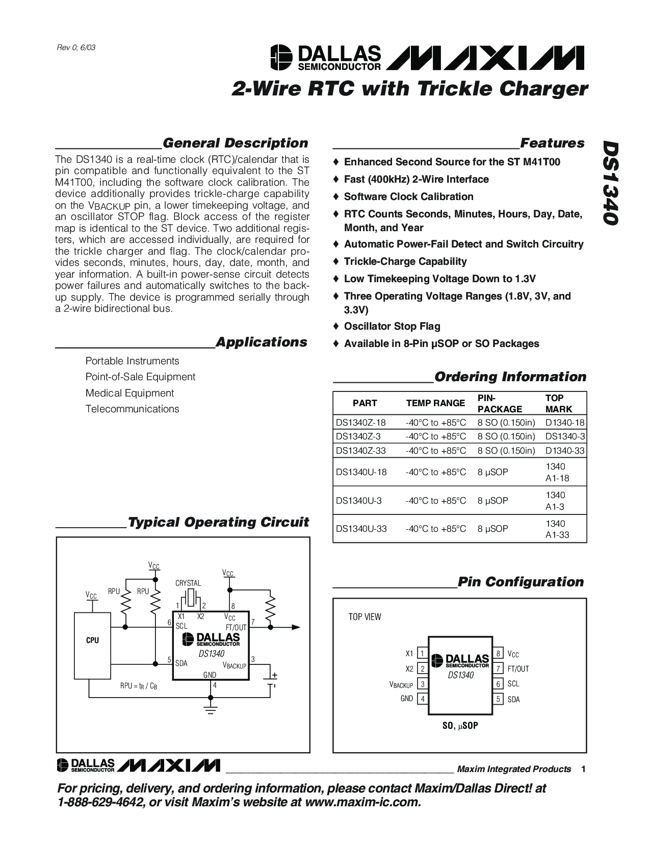 ds1340z-18 -40°c 至 +85°c 8 所以 (0.150in) d1340-18