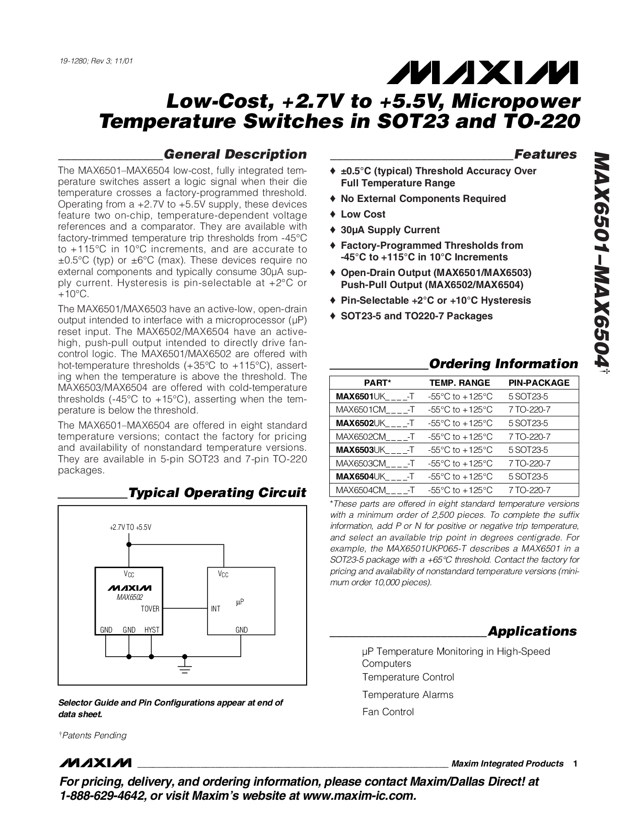 max6501cm_ _ _ _-t -55°c 至 +125°c 7 至-220-7