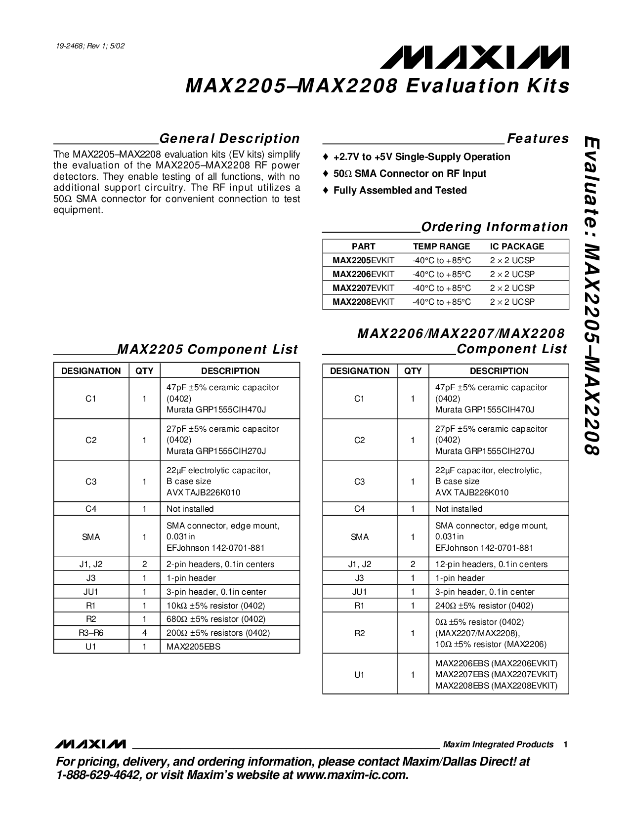 1-888-629-4642, 或 参观 马克西姆’s 网站 在 www.马克西姆-集成电路.com.