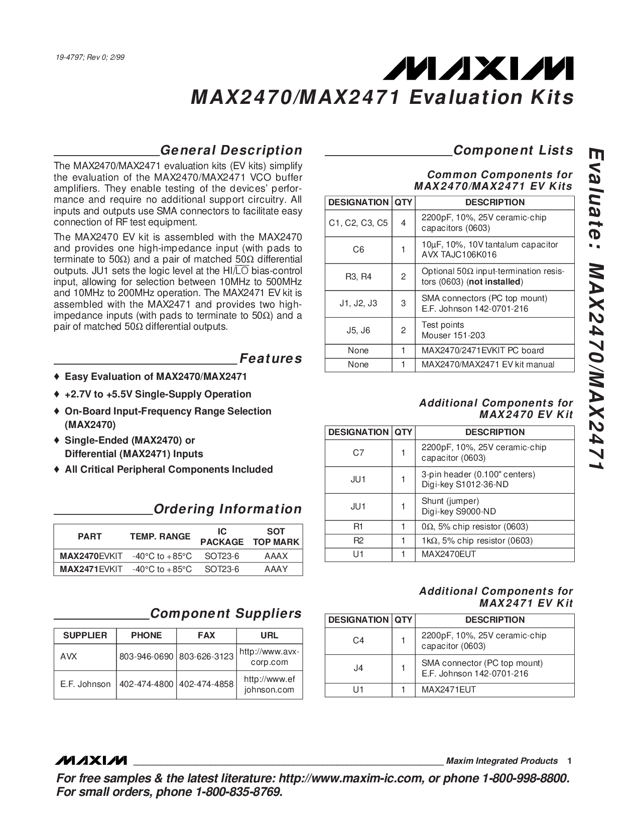 和 10mhz 至 200mhz 操作. 这 max2471 电动汽车 工具包 是