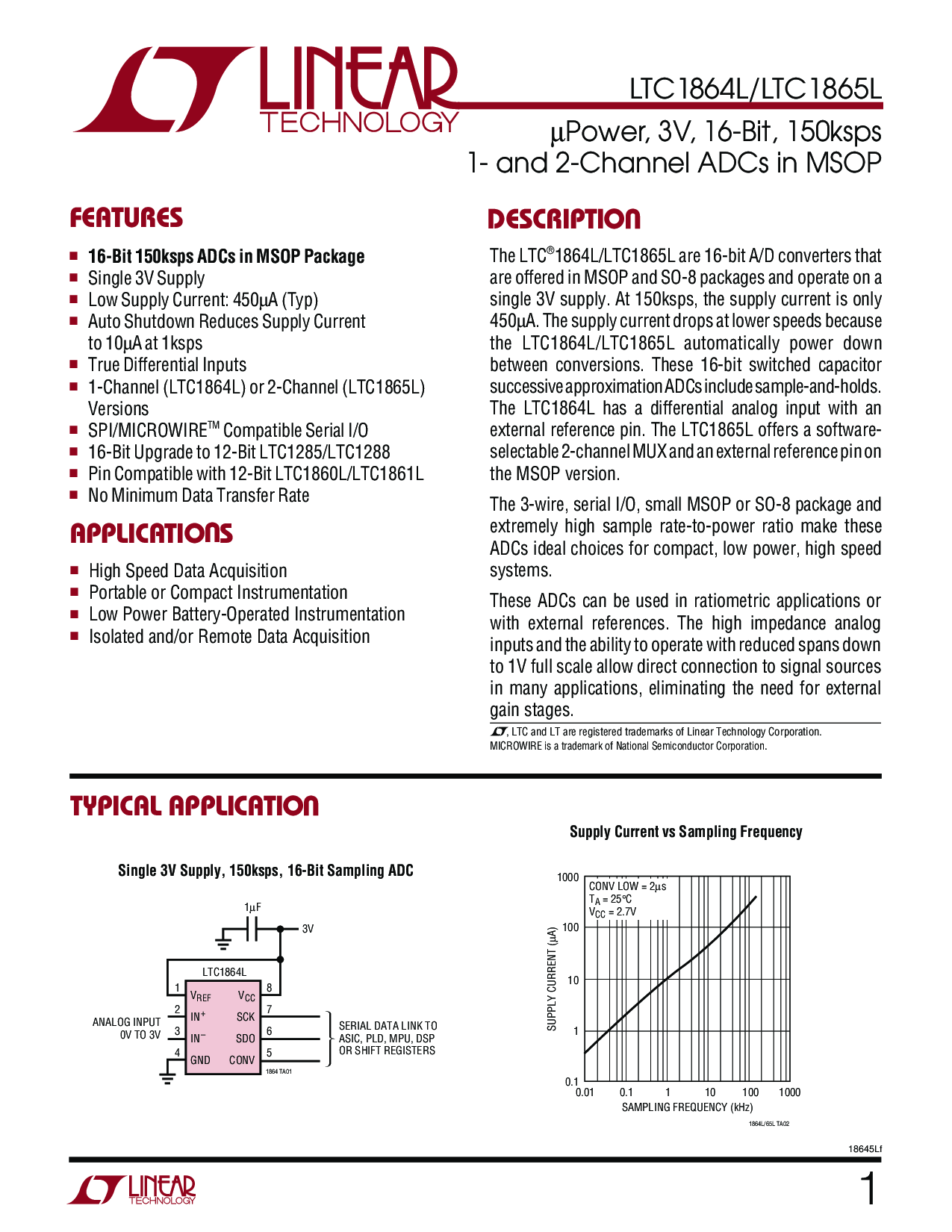 1-频道 (ltc1864l) 或 2-频道 (ltc1865l)
