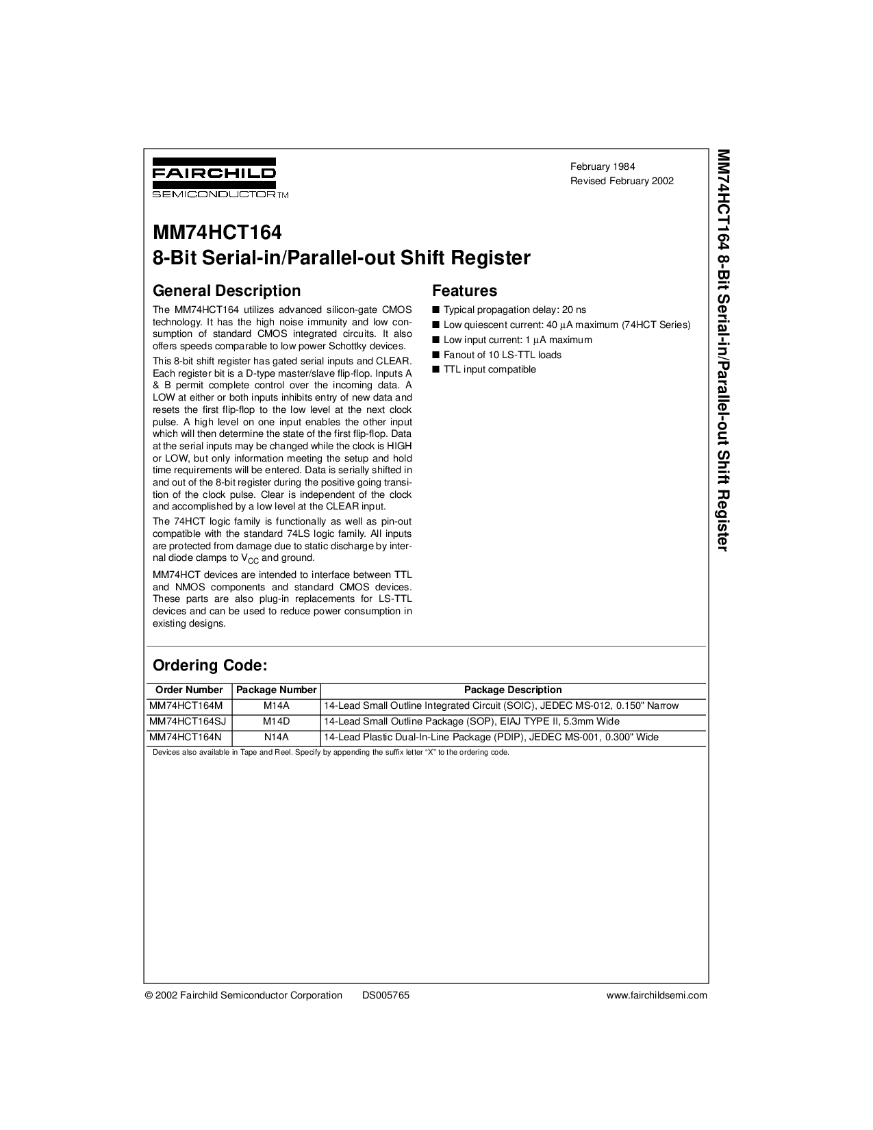 浏览型号MM74HCT164的Datasheet PDF文件第2页