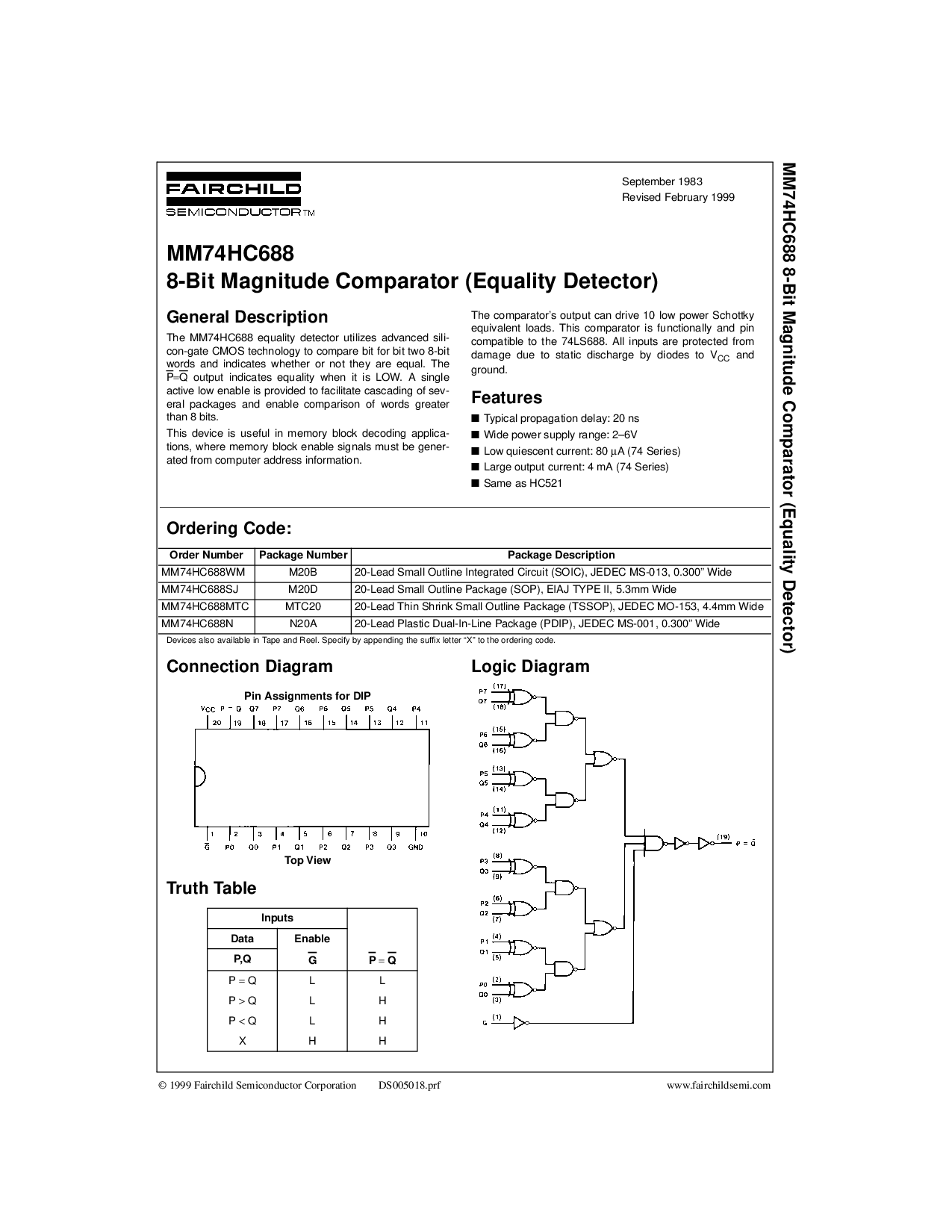 mm74hc688 8-有点 震级 比较器 (平等 检测器)