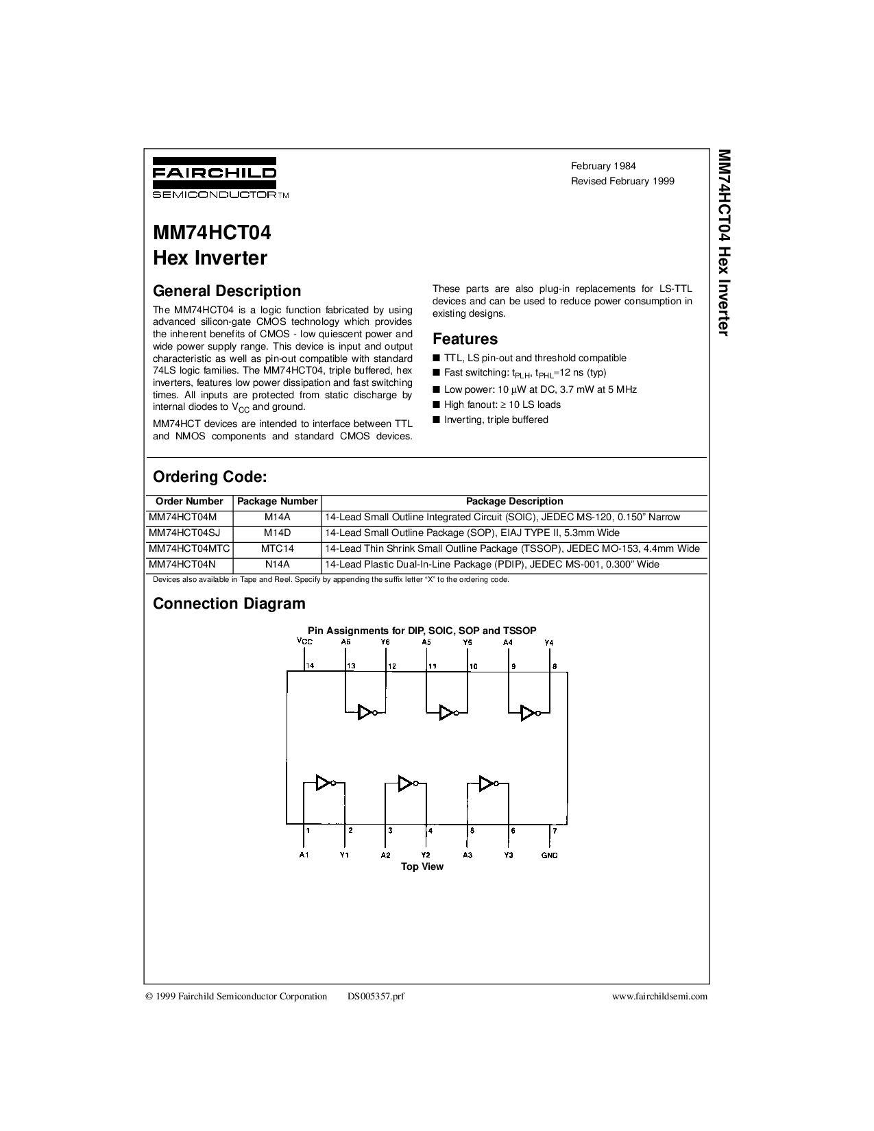 © 1999 仙童 半导体 公司 ds005357.prf www.仙女半.com