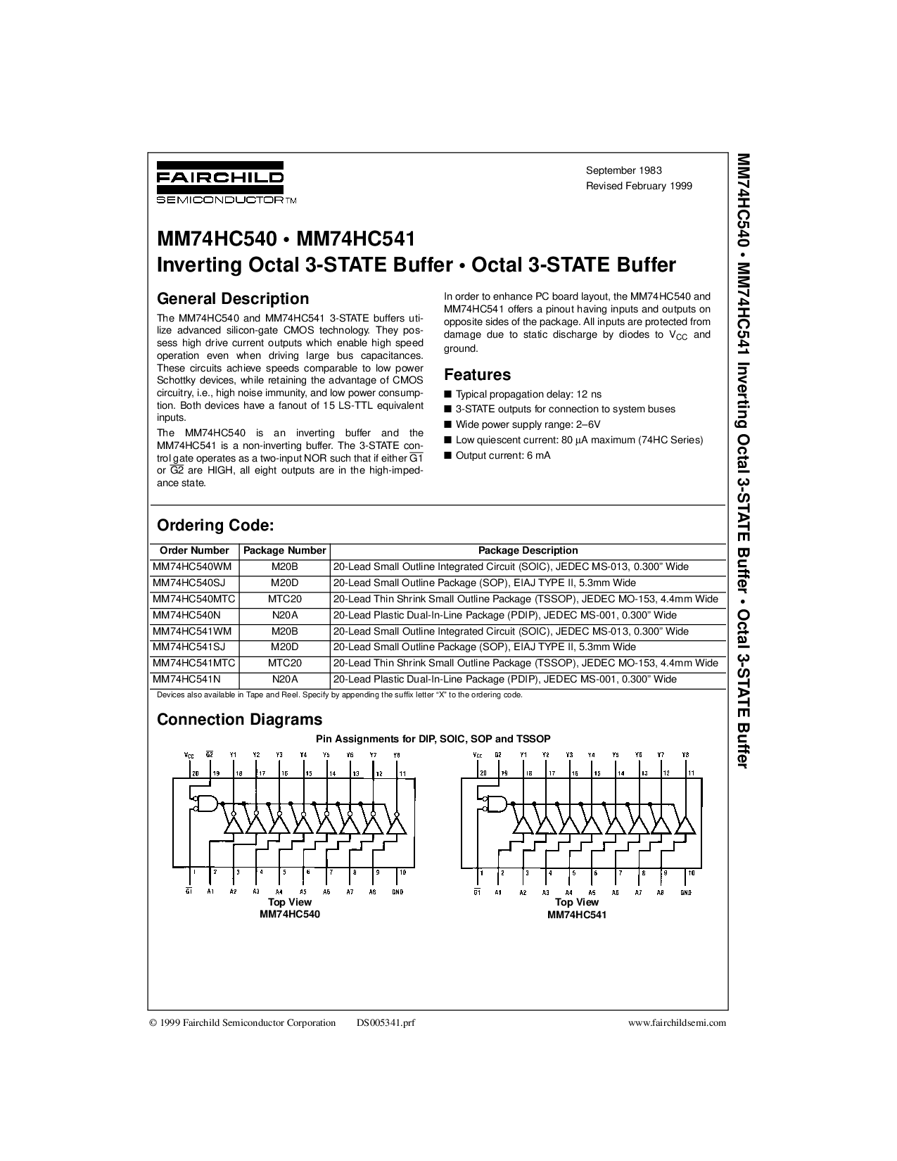 • mm74hc541 反转 八进制 3-州 缓冲区 • 八进制 3-州 缓冲区