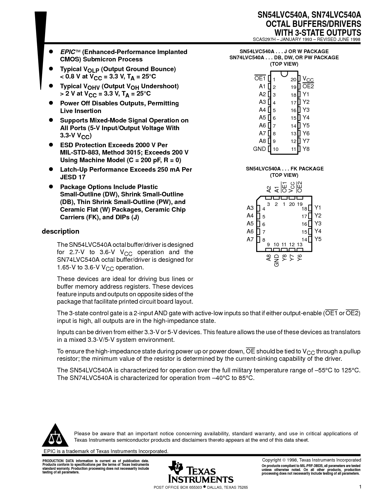 这 sn54lvc540a 八进制 缓冲区/驾驶员 是 设计