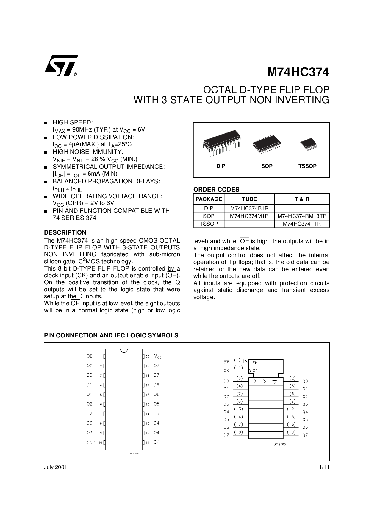 这 m74hc374 是 一个 高 速度 cmos 八进制