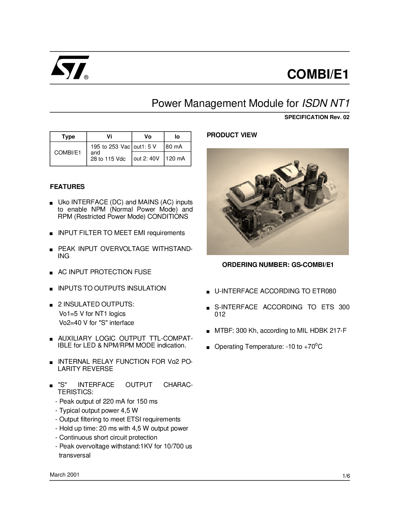 - 峰值 过电压 承受:1kv 用于 10/700 美国
