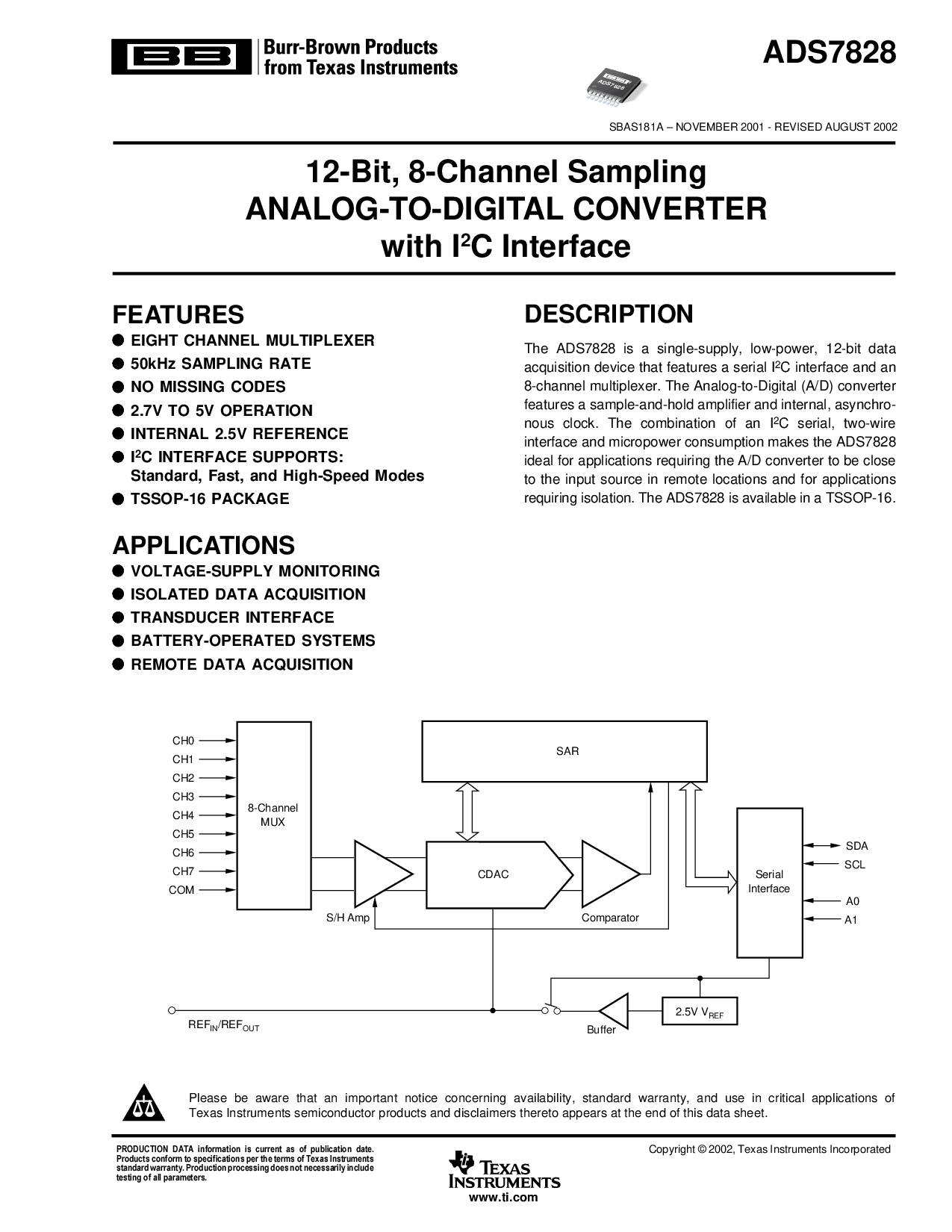 要求 隔离. 这 ads7828 是 可用 入点 一个 tssop-16.