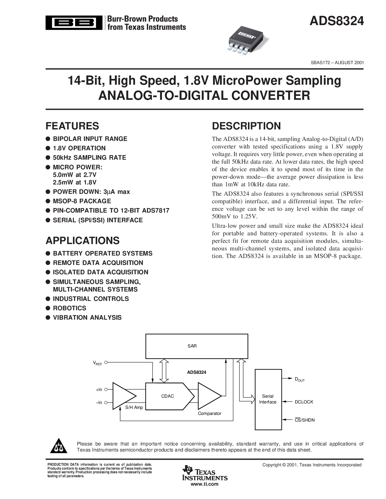 操作. 这 ads8324 是 可用 入点 一个 msop-8 包装.