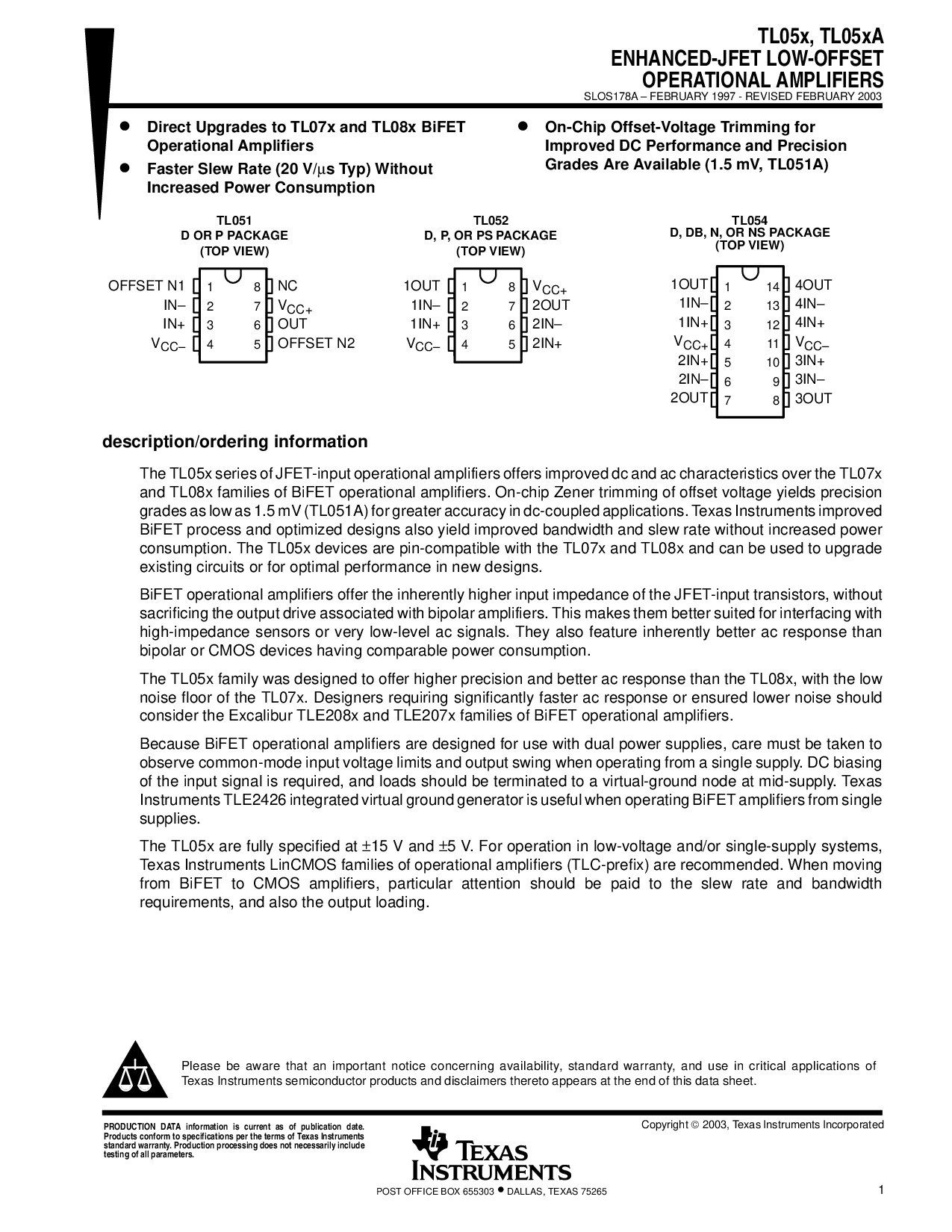 等级 作为 低 作为 1.5 mv (tl051a) 用于 更大 准确度 入点 直流耦合 应用程序. 德州 仪器仪表 改进