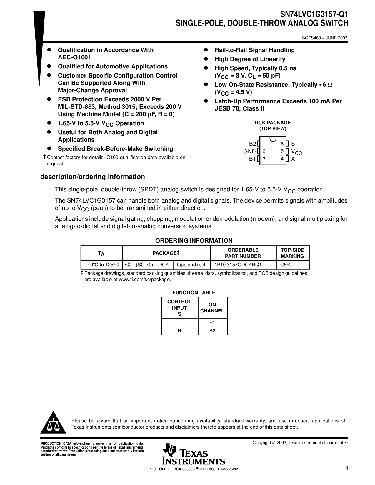 c sot (sc-70) – dck 胶带 和 卷轴 1P1G3157QDCKRQ1 C5R