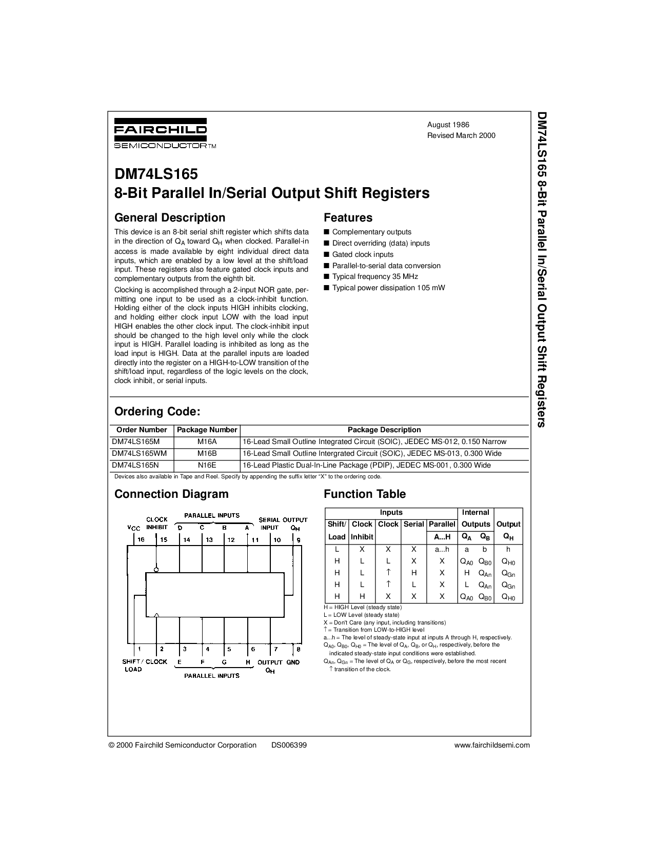 DM74LS165M M16A 16-铅 小 大纲 综合 电路 (soic), 电子元件工业联合会 ms-012, 0.150 窄