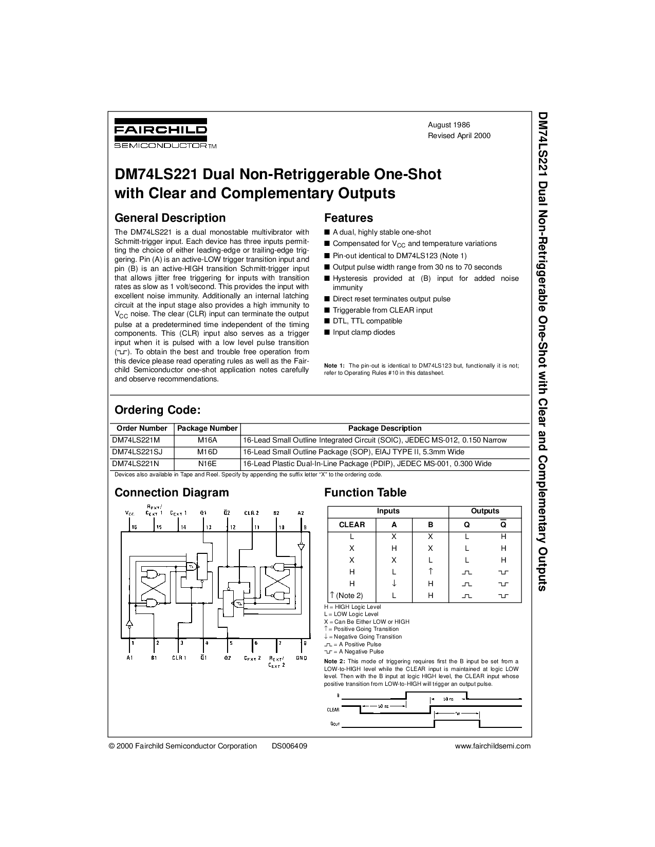 dm74ls221 双 非-可再触发 一枪 与 清除 和 互补 产出