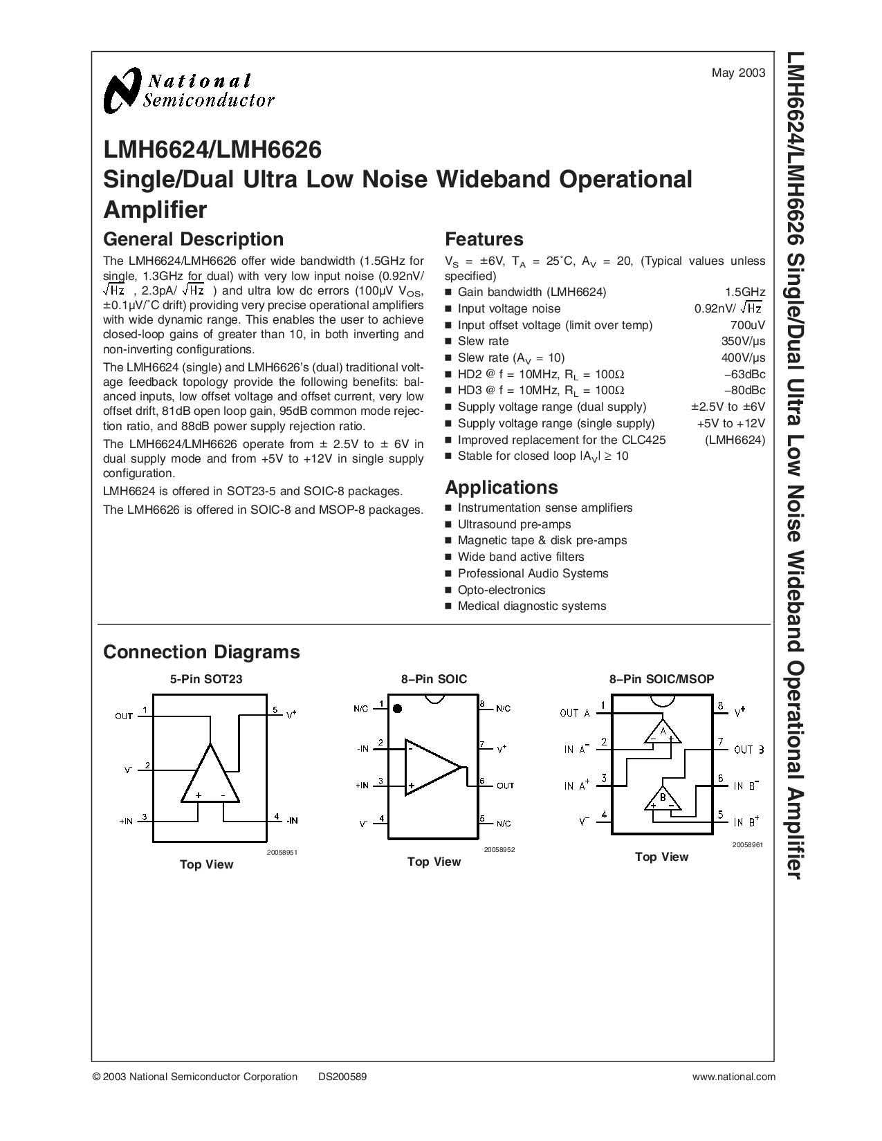 LMH6624 LMH6626 Single Dual Ultra Low Noise Wideband Operational Amplifier