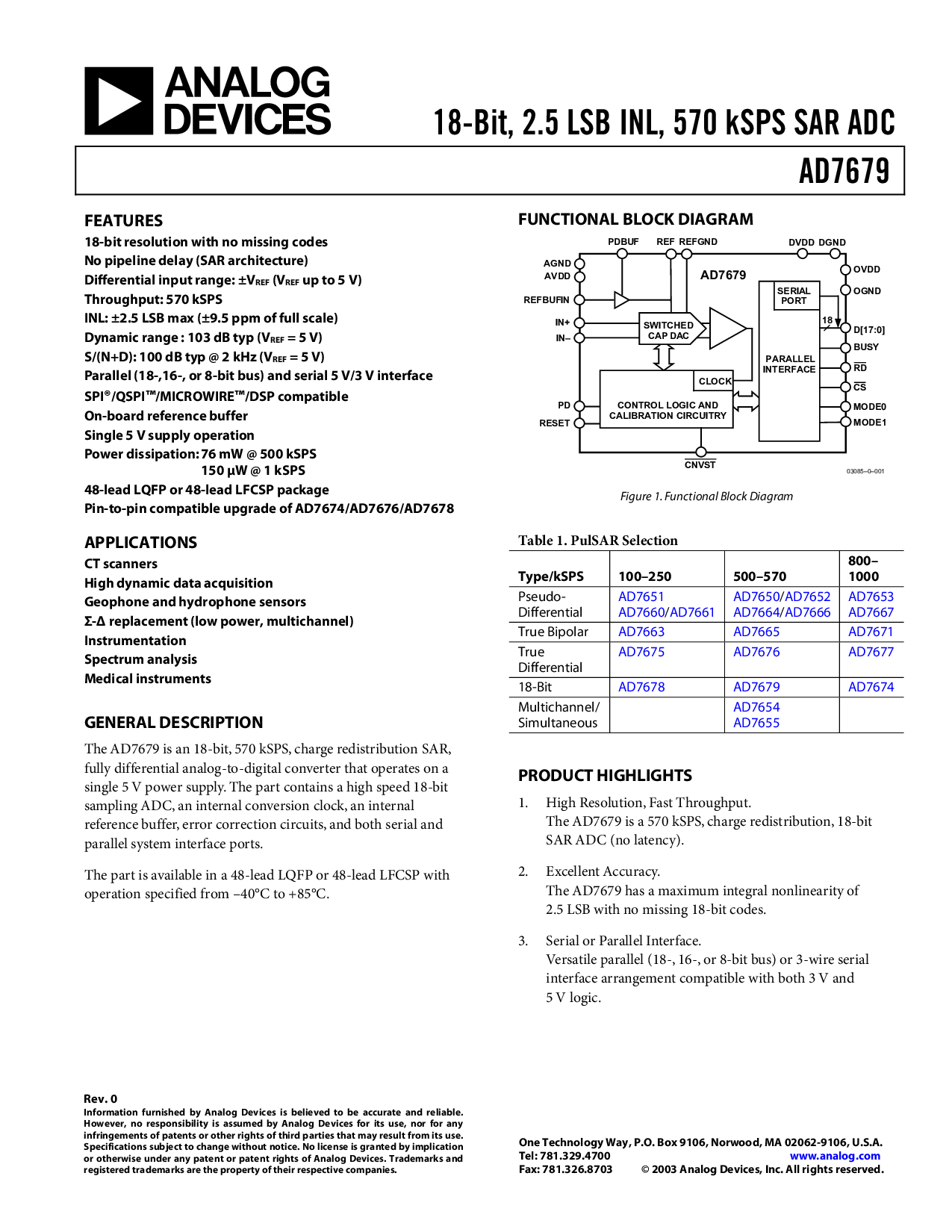 这 ad7679 是 一个 18-有点, 570 ksps, 费用 再分配 sar,