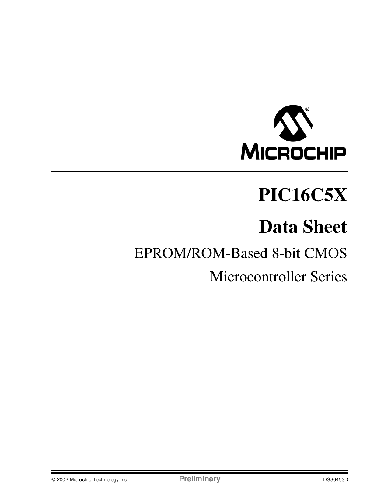 2002 微芯片 技术 公司 初步 DS30453D PIC16C5X 数据 工作表 非易失存储器/rom-基于 8-有点 cmos 微控制器 系列 | |