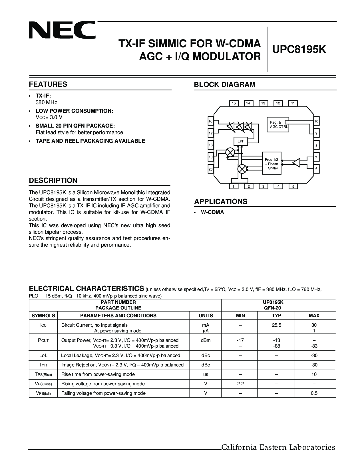 这 upc8195k 是 一个 tx-如果 集成电路 包括 如果-agc 放大器 和