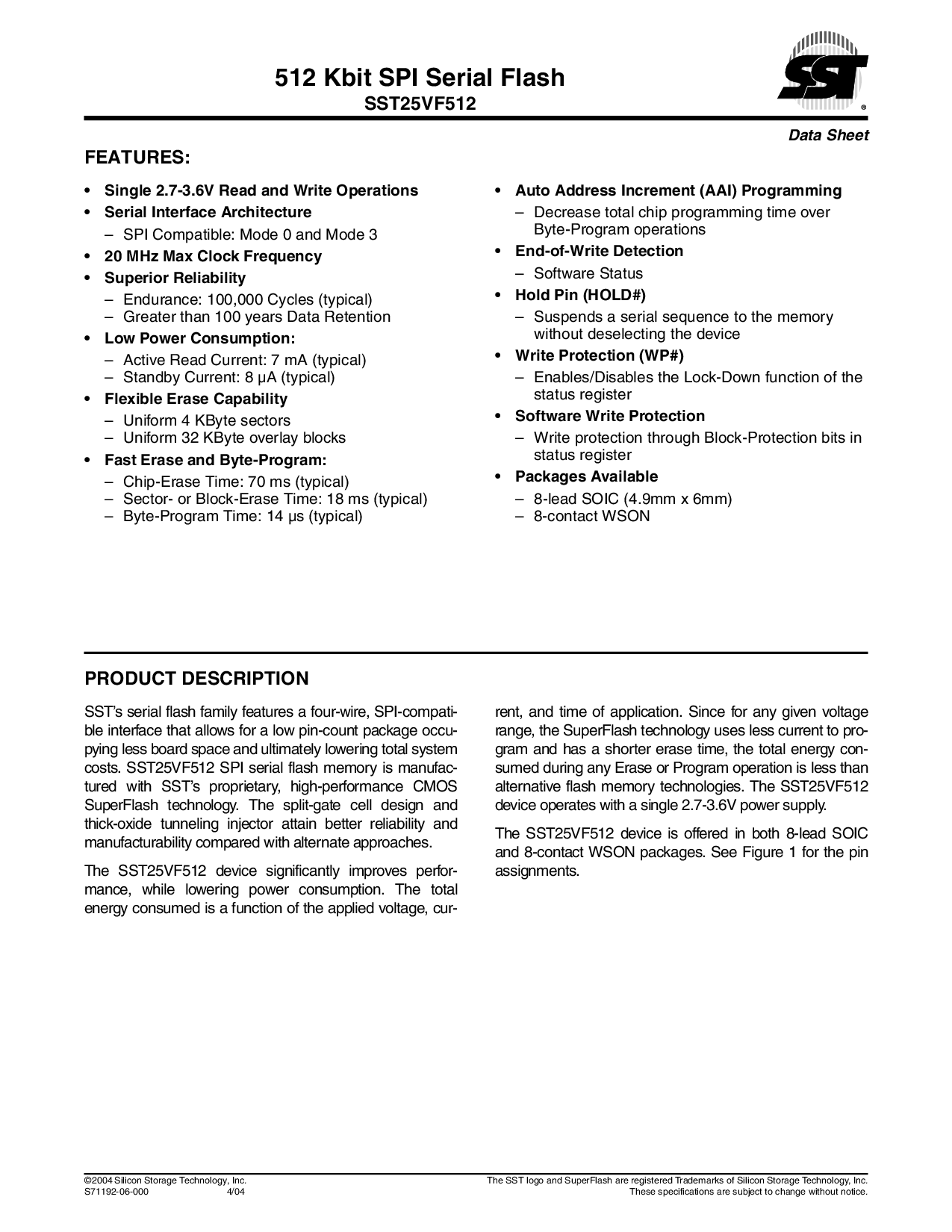 浏览型号SST25VF512-20的Datasheet PDF文件第4页