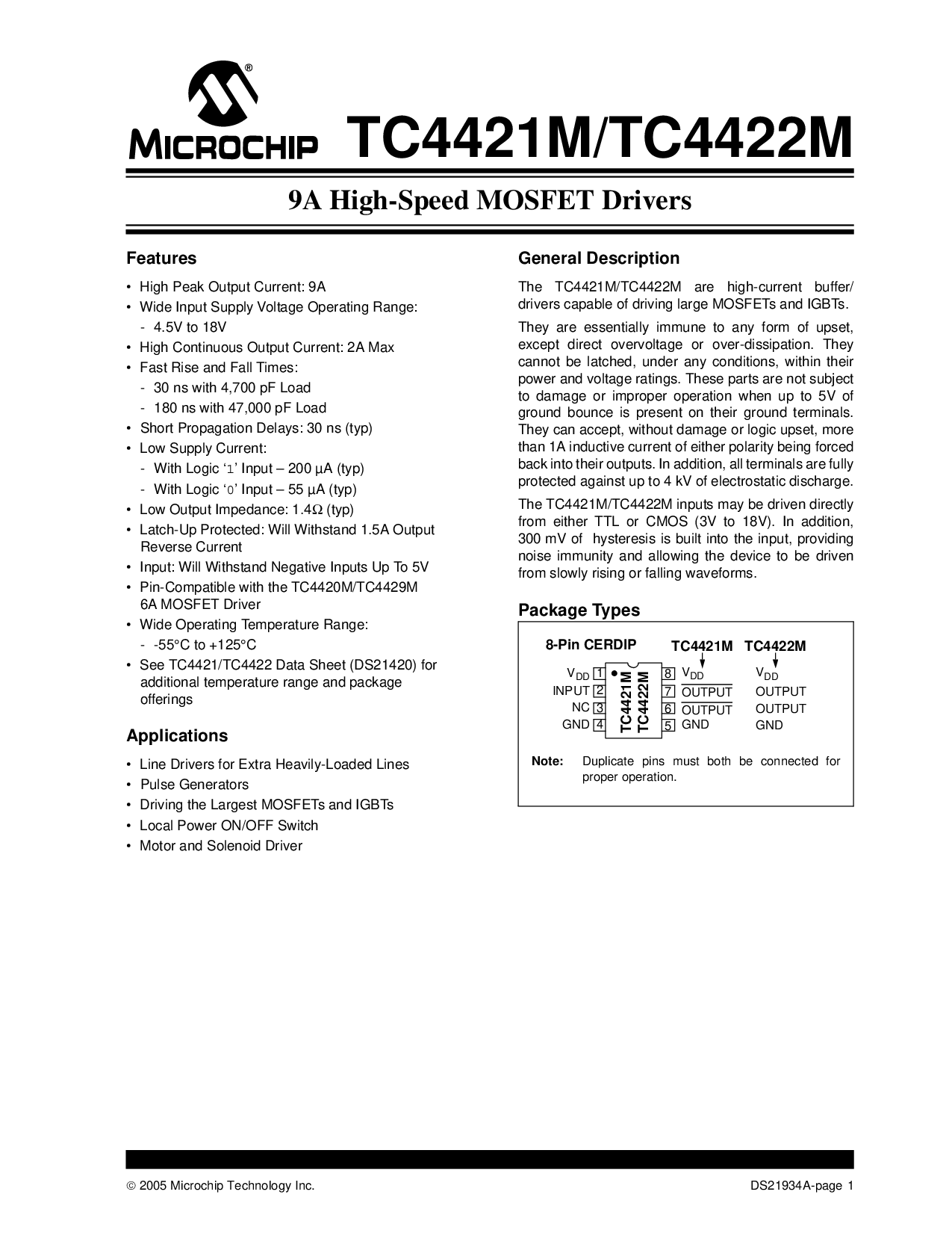 • 请参见 tc4421/tc4422 数据 工作表 (ds21420) 用于