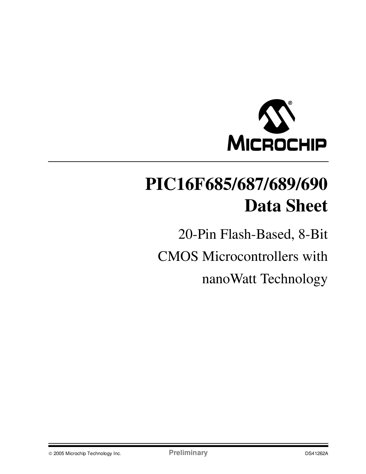 © 2005 微芯片 技术 公司 初步 DS41262A pic16f685/687/689/690 数据 工作表 20-管脚 闪光灯-基于, 8-有点 cmos 微控制器 与 nanowatt 技术 | |
