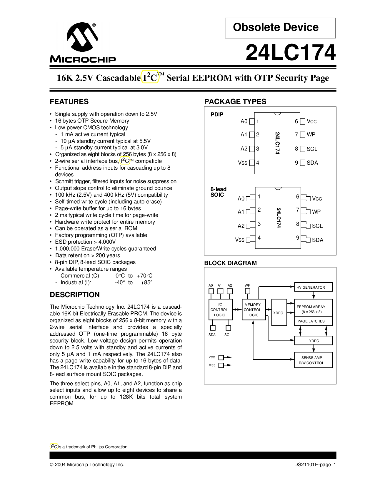 这 微芯片 技术 公司 24lc174 是 一个 cascad-
