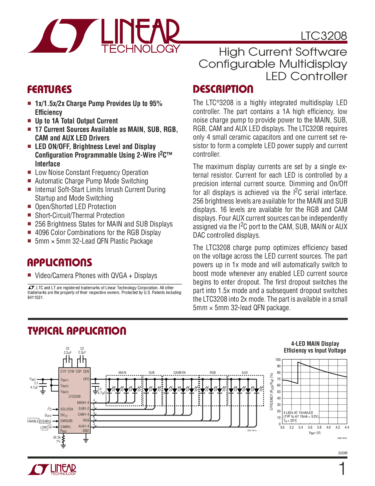 rgb, 凸轮 和 辅助 led指示灯 显示器. 这 ltc3208 需要